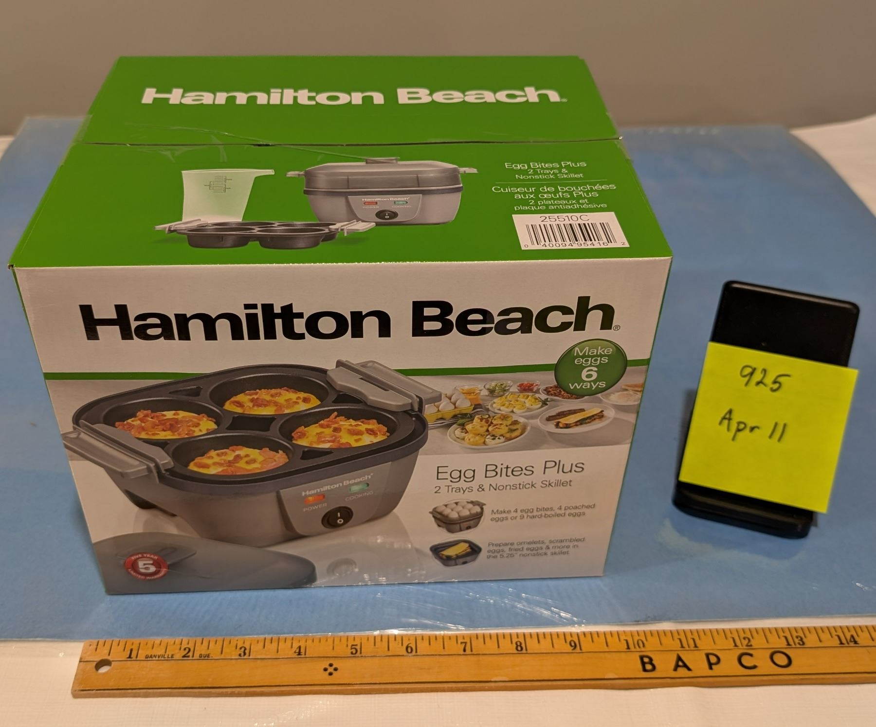 Lot 925 New in Box Electric Egg Cooker. 4 Eggs Poached/Bites, 9 Boiled, Skillet.