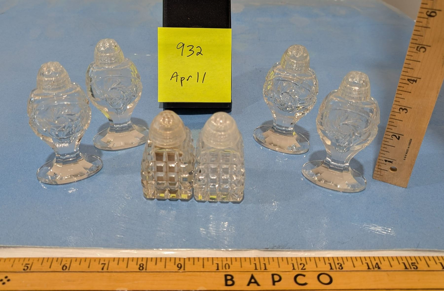 Lot 932 3 Pairs Crystal Salt and Pepper Shakers. 2 Pairs are Pinwheel Crystal.