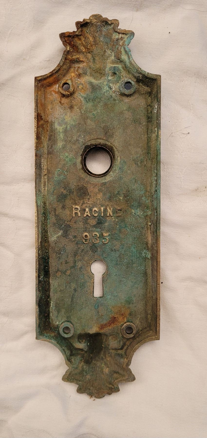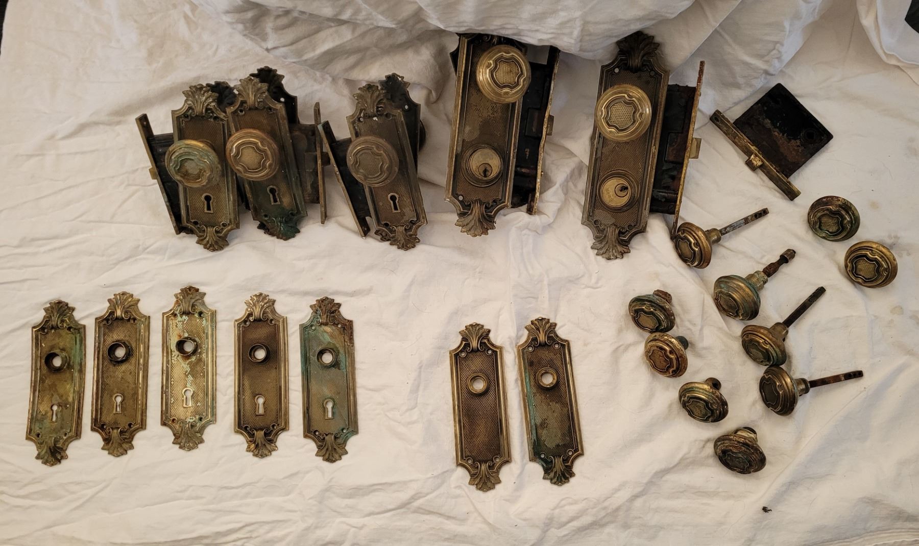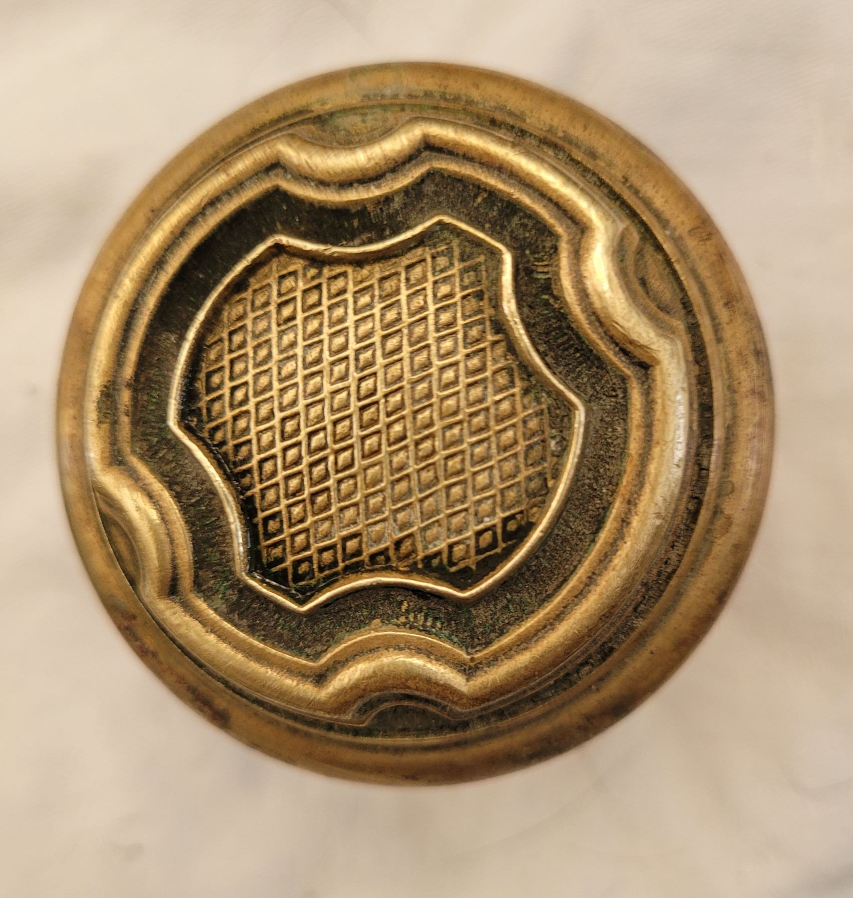 Lot 974 Antique "Racine" Pattern (1905-1908) 2.25" diameter solid brass doorknobs and door sets (French Art
