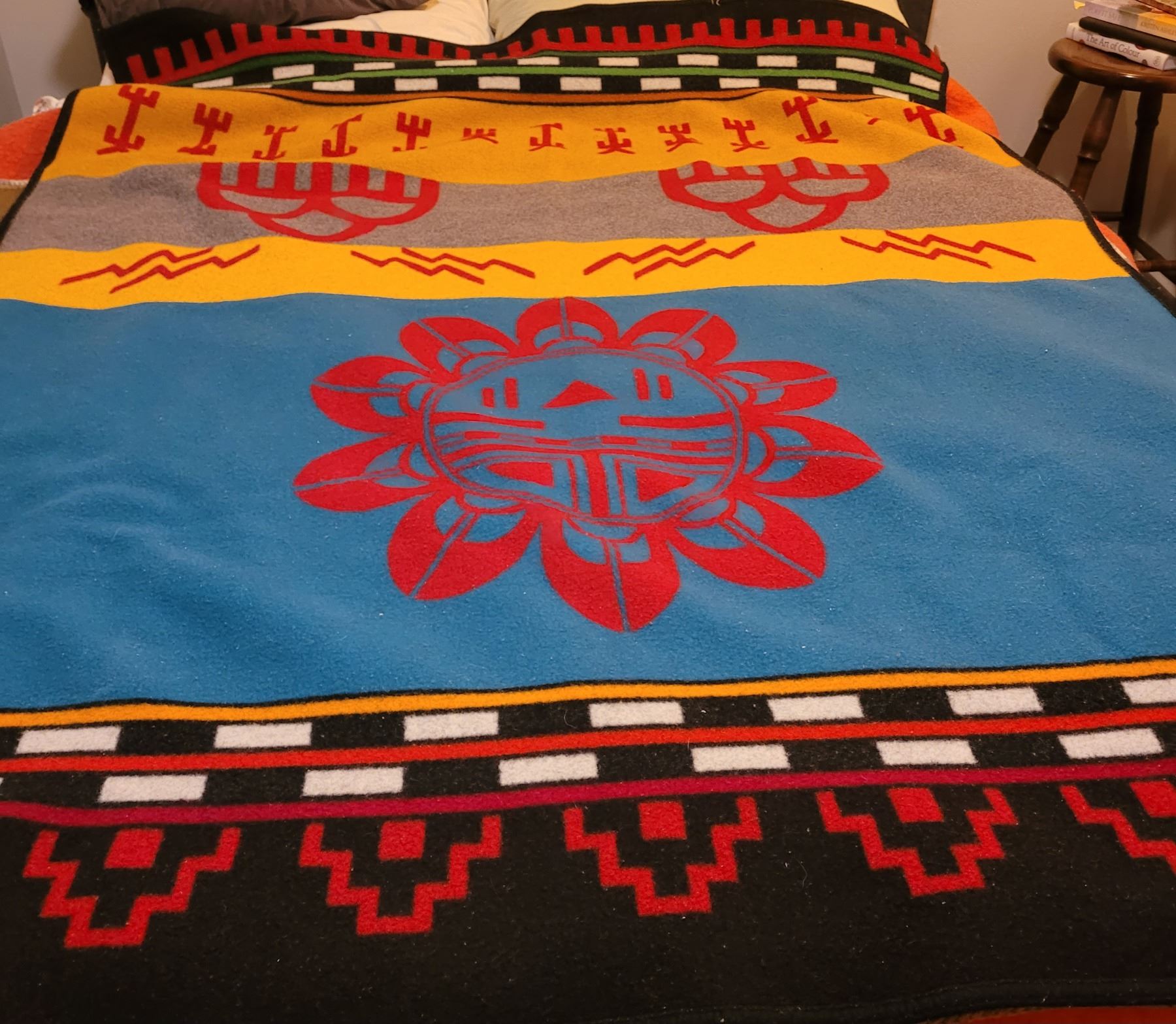 Wool Pendleton Blanket "Gift of Life" pattern - reverse side has red background - 56" x 70"