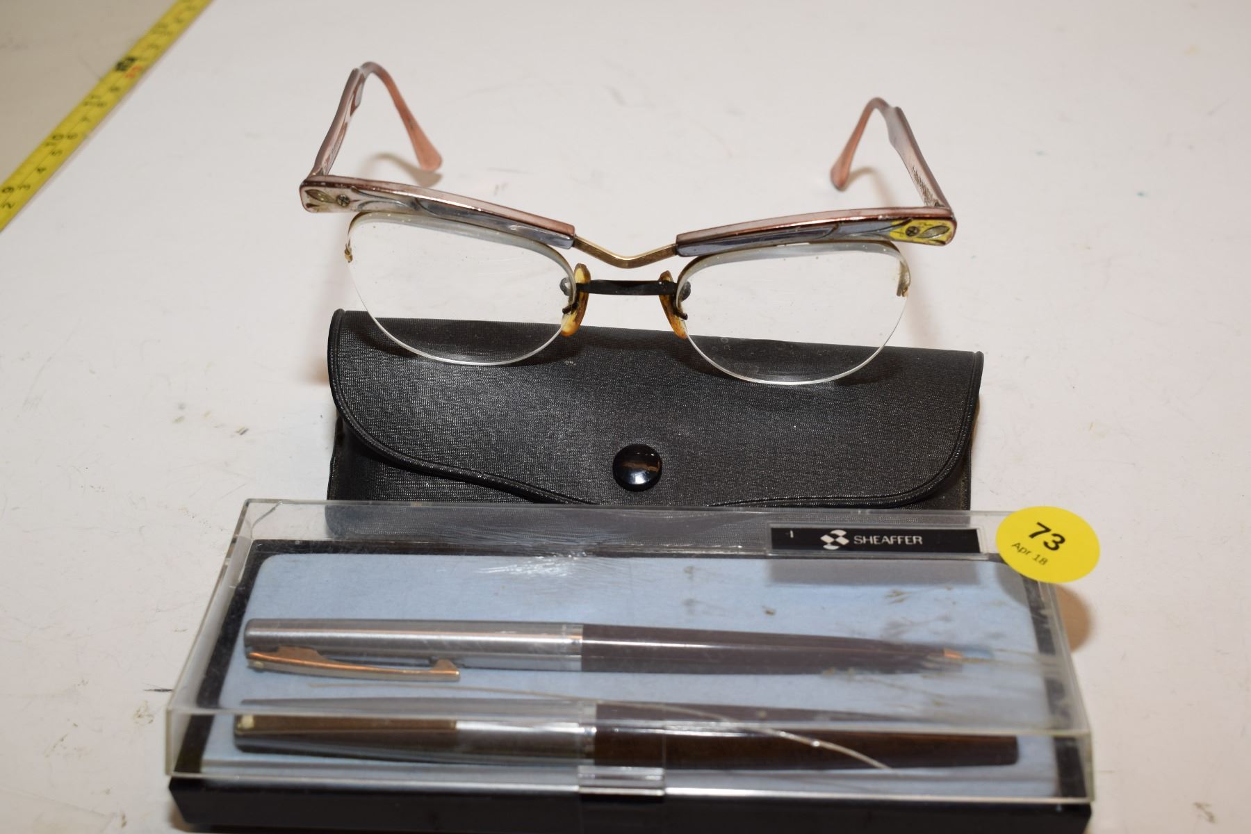 Lot 73 12KT Gold Filled Glasses & Sheaffer Pen Set