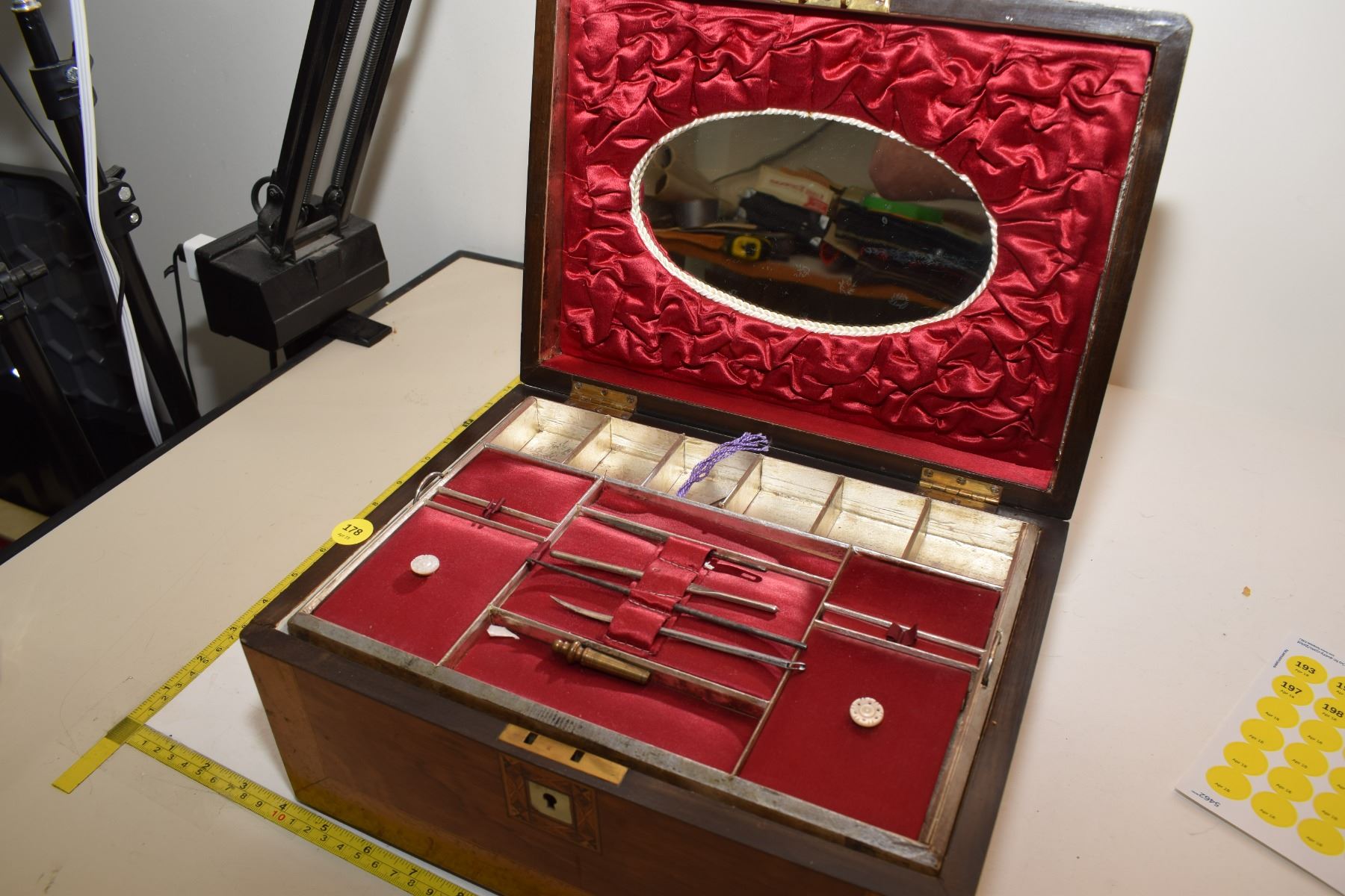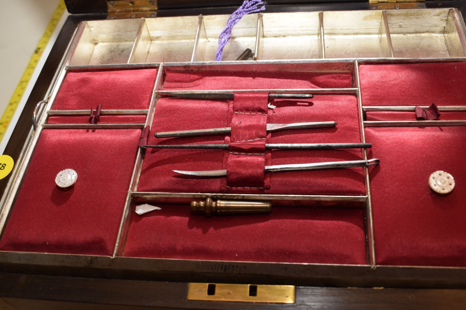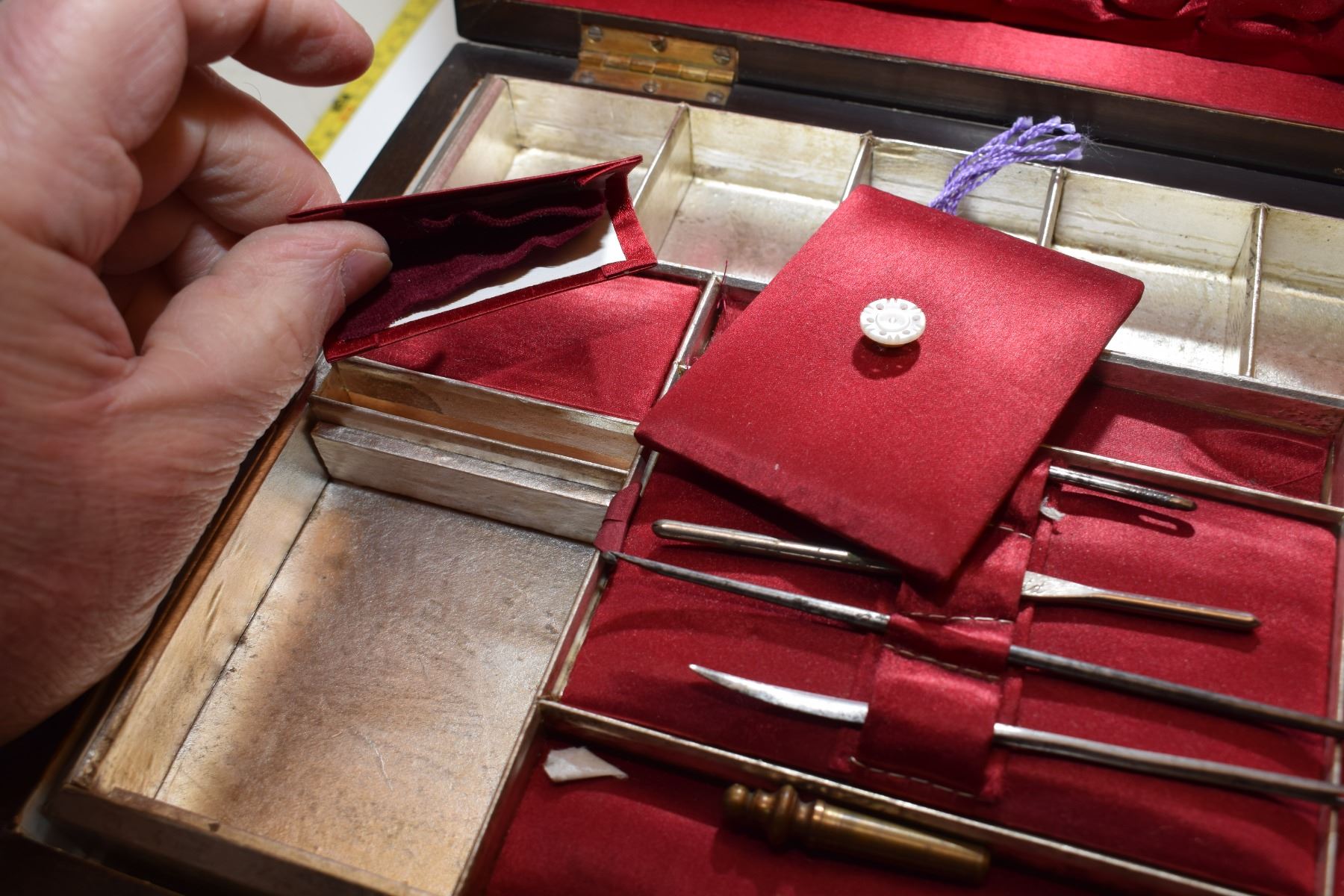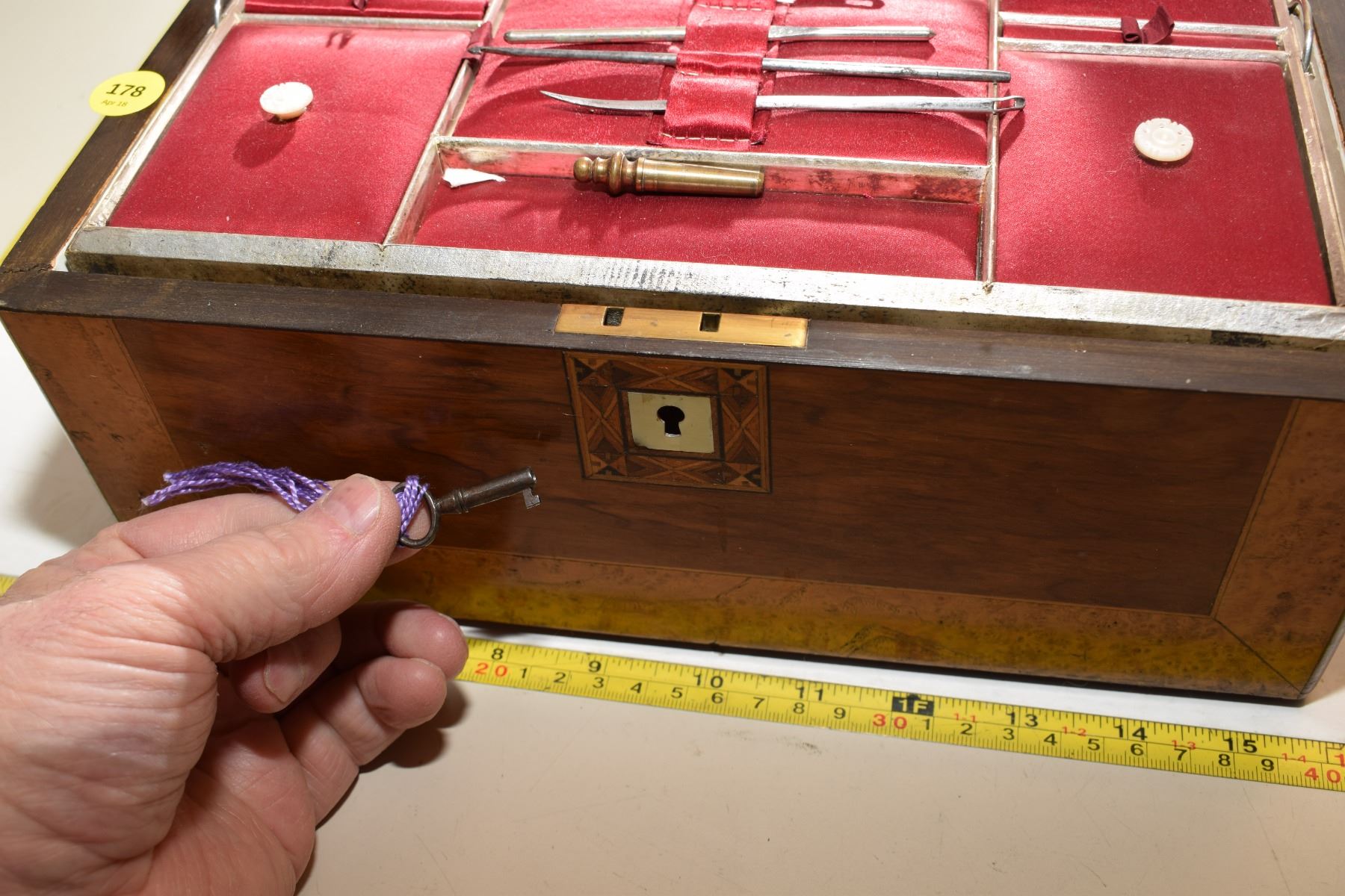Lot 178 Antique Burled Chest – Possibly Surgical Set (Item Stamped “Allcock Redditch II[x=