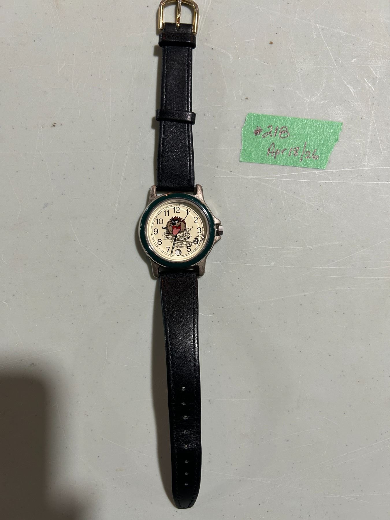 1994 Warner Brothers Tasmanian Devil watch – leather strap, in working condition