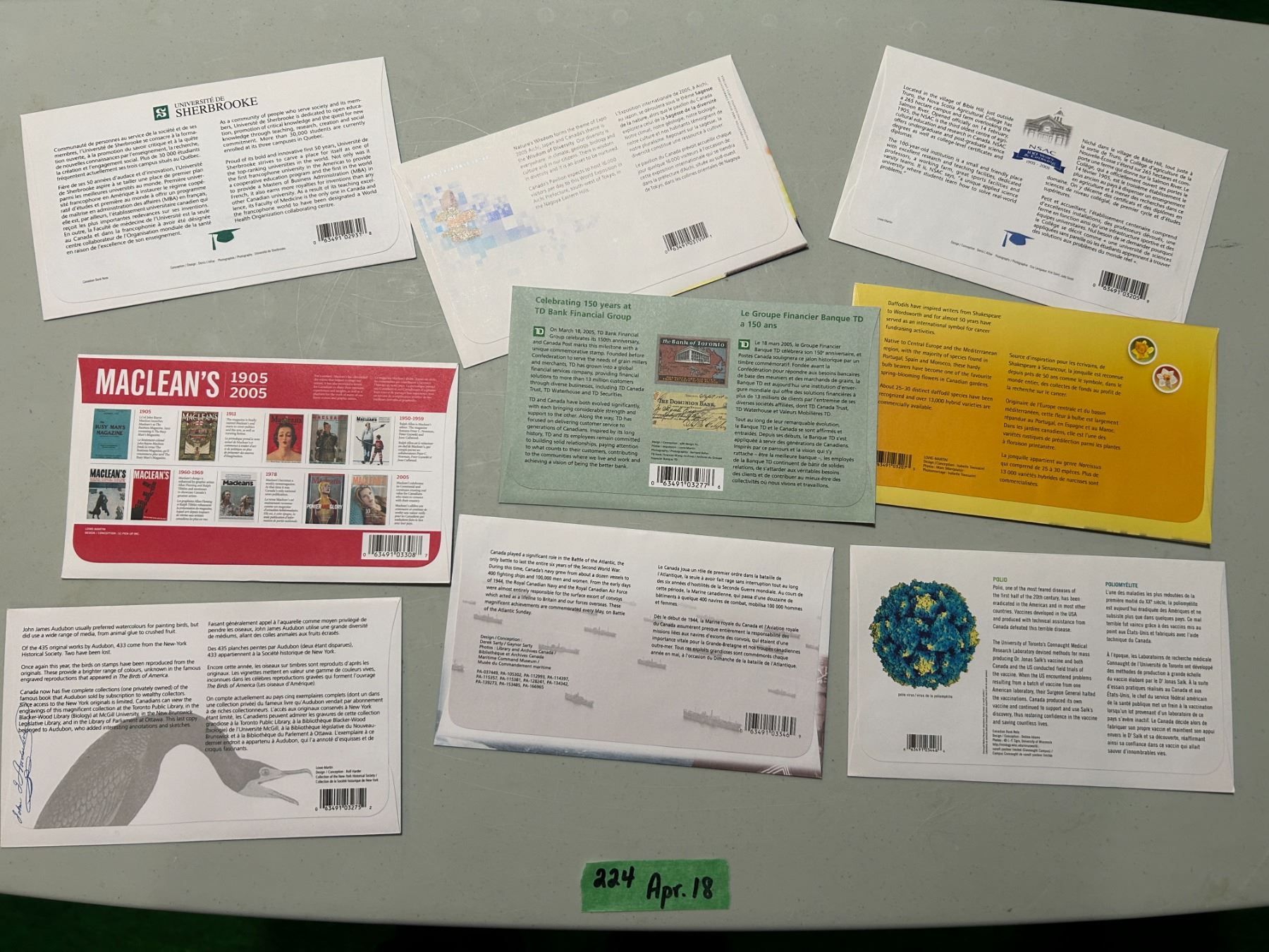 Lot 224 Canada Post Day of Issue envelopes with matching stamps 2004-2005(quantity 30+)