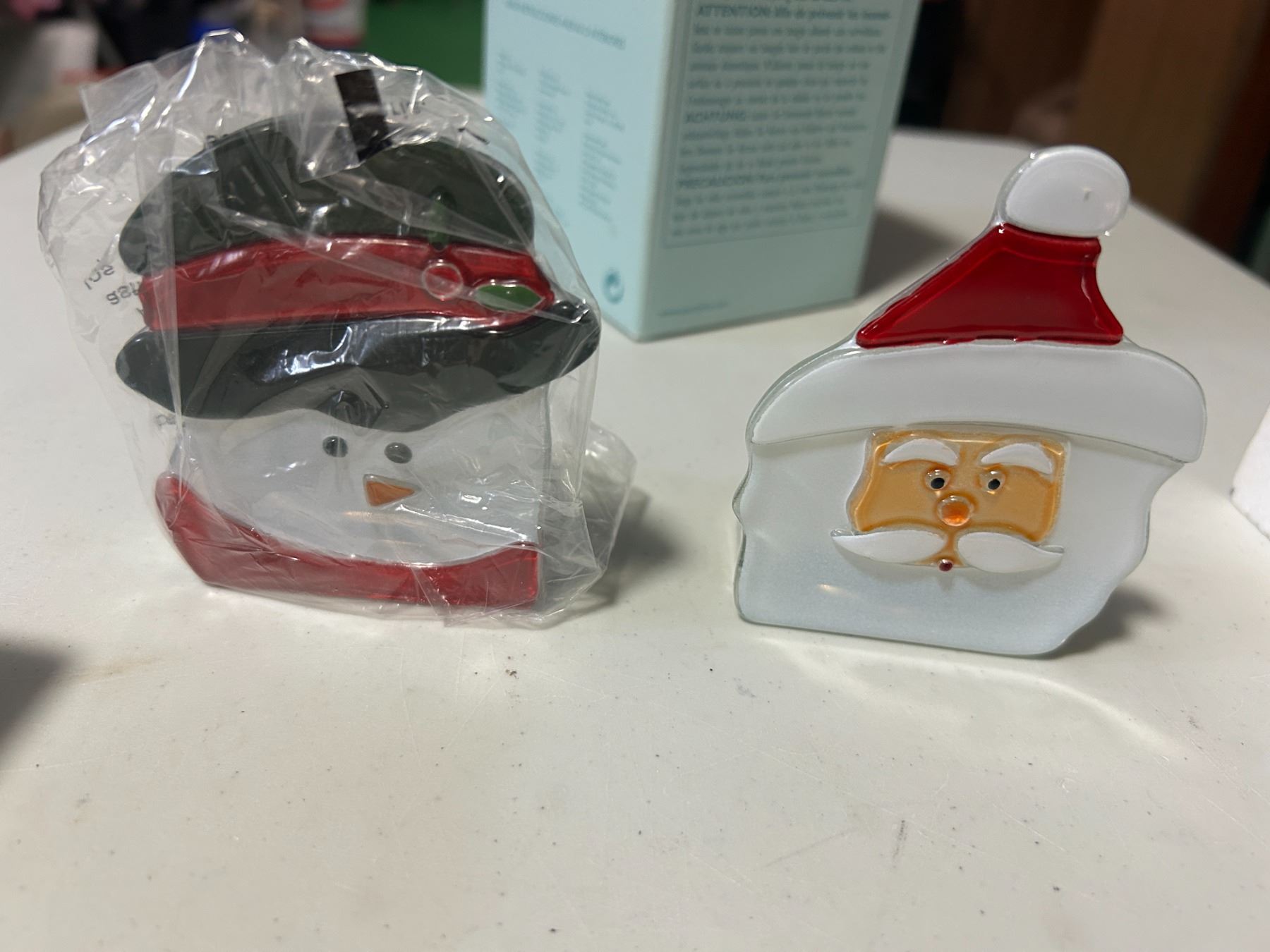 Lot 246 PartyLite winter tealight holders – Snowman and Santa (new in box)