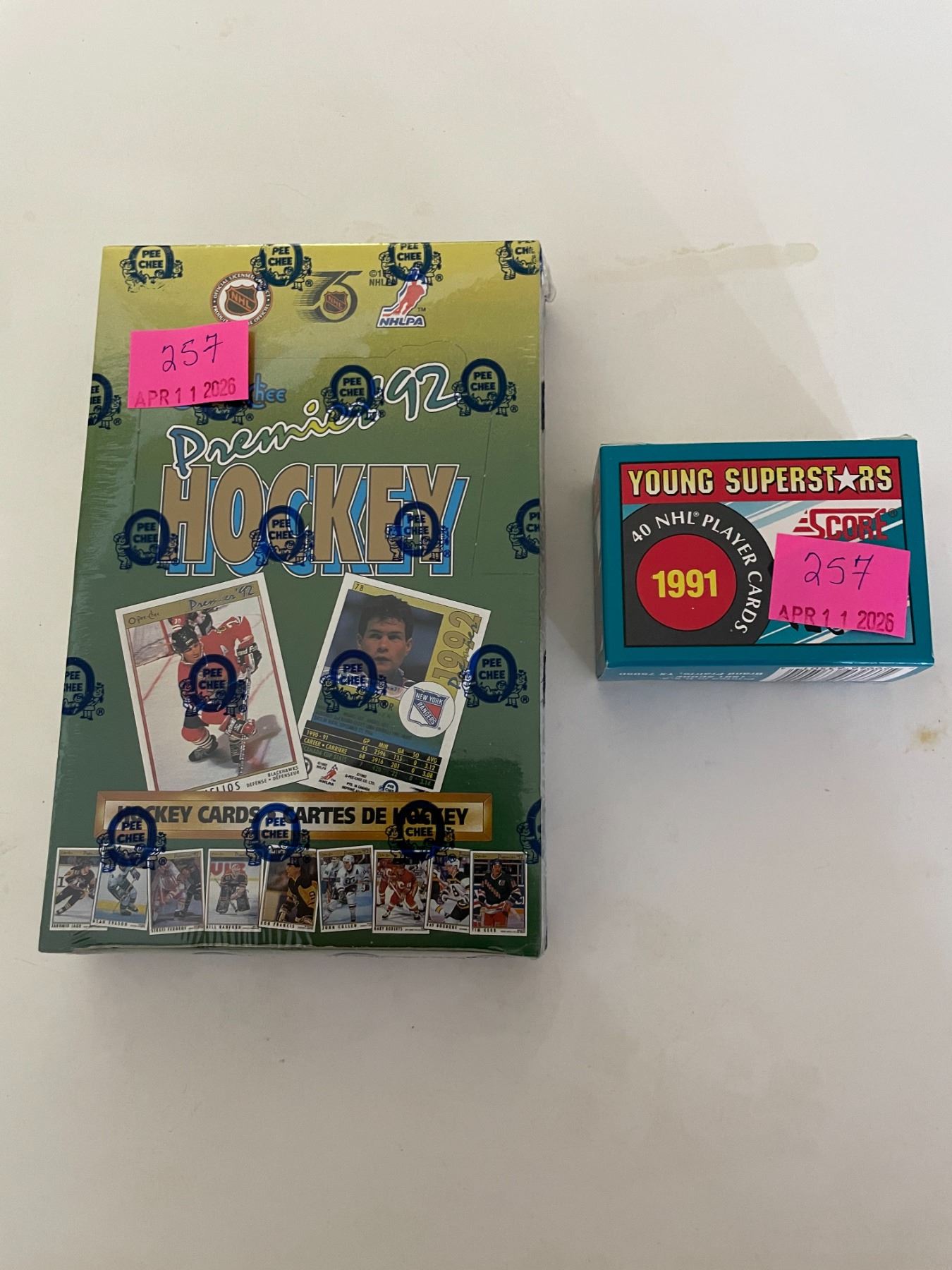 Lot 257 Sealed box of O-PEE-CHEE premier 1992 hockey cards and box of 40 young superstars of nhl hockey