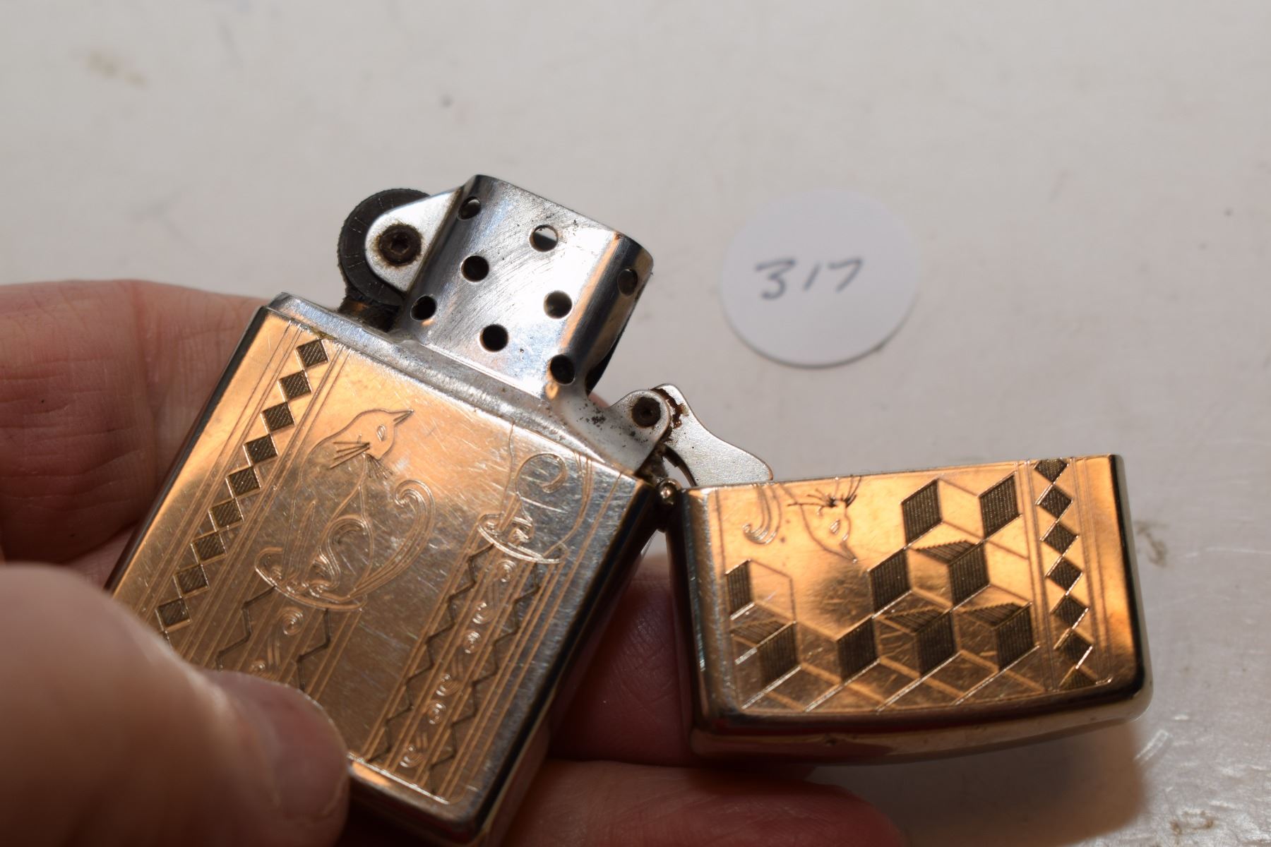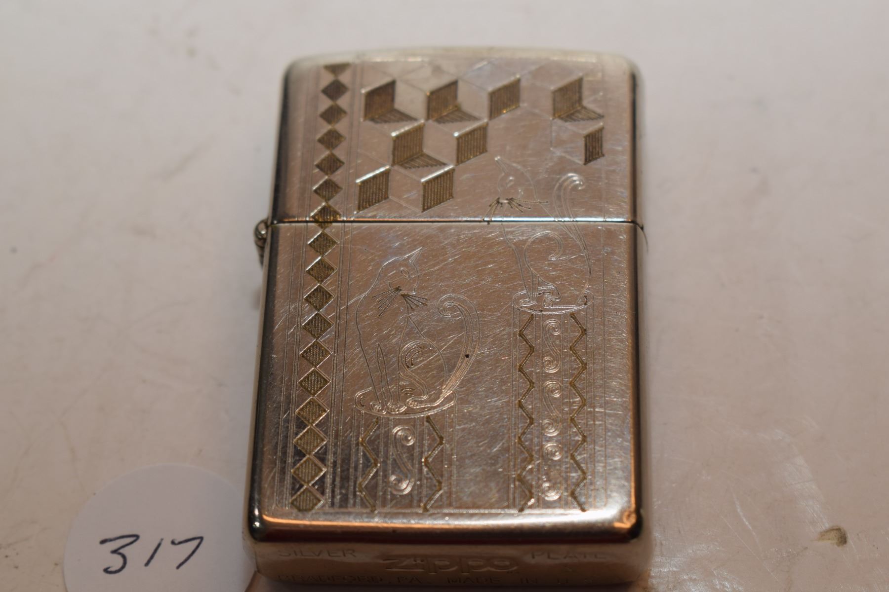 Lot 317 Silver Plated Gold Inlay “Feline” Elegance Zippo Lighter