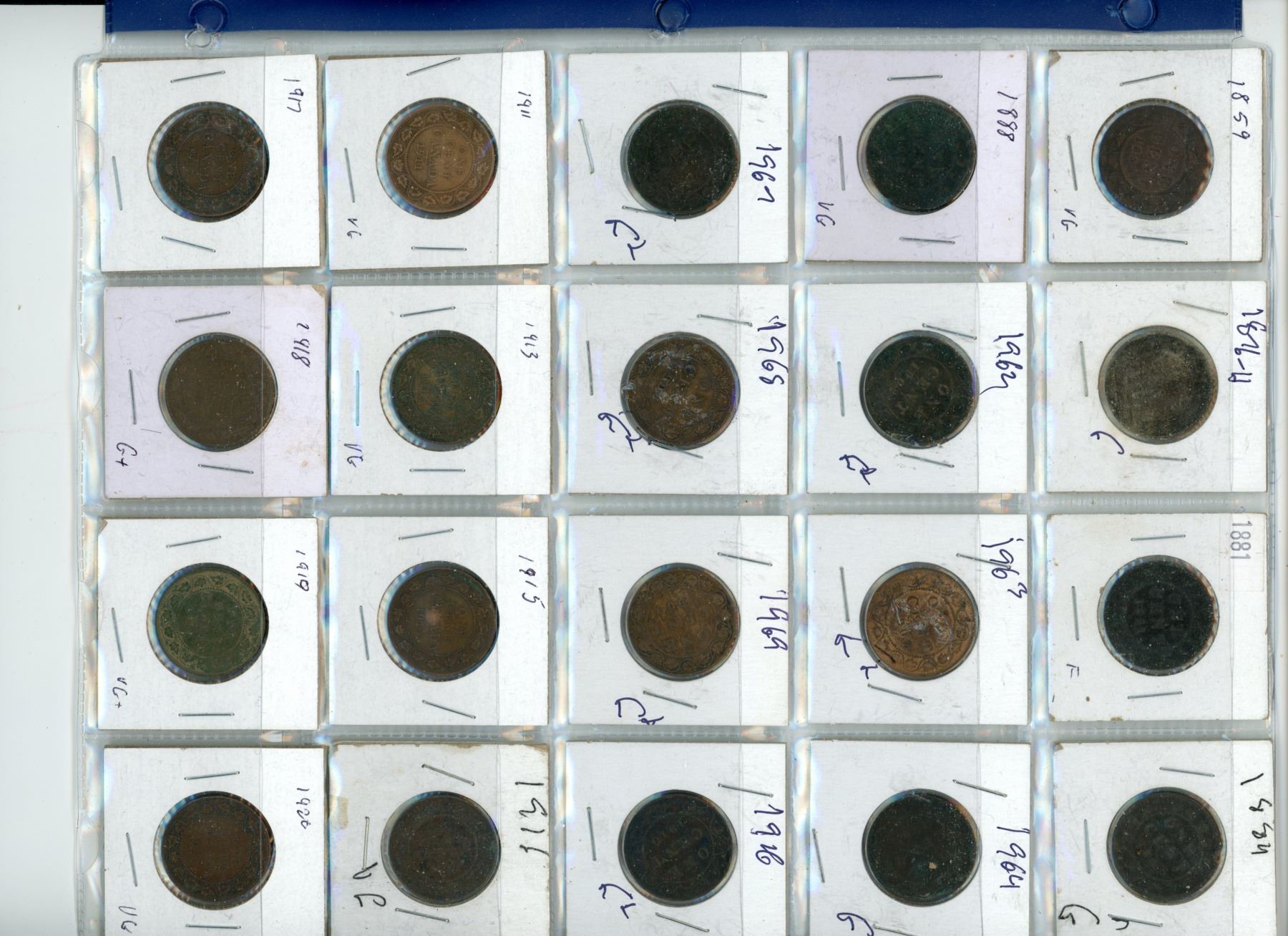 Lot 367 (2) Pages of Antique and Vintage Canadian pennies From Roughly 1859-1920 and 1949-1999