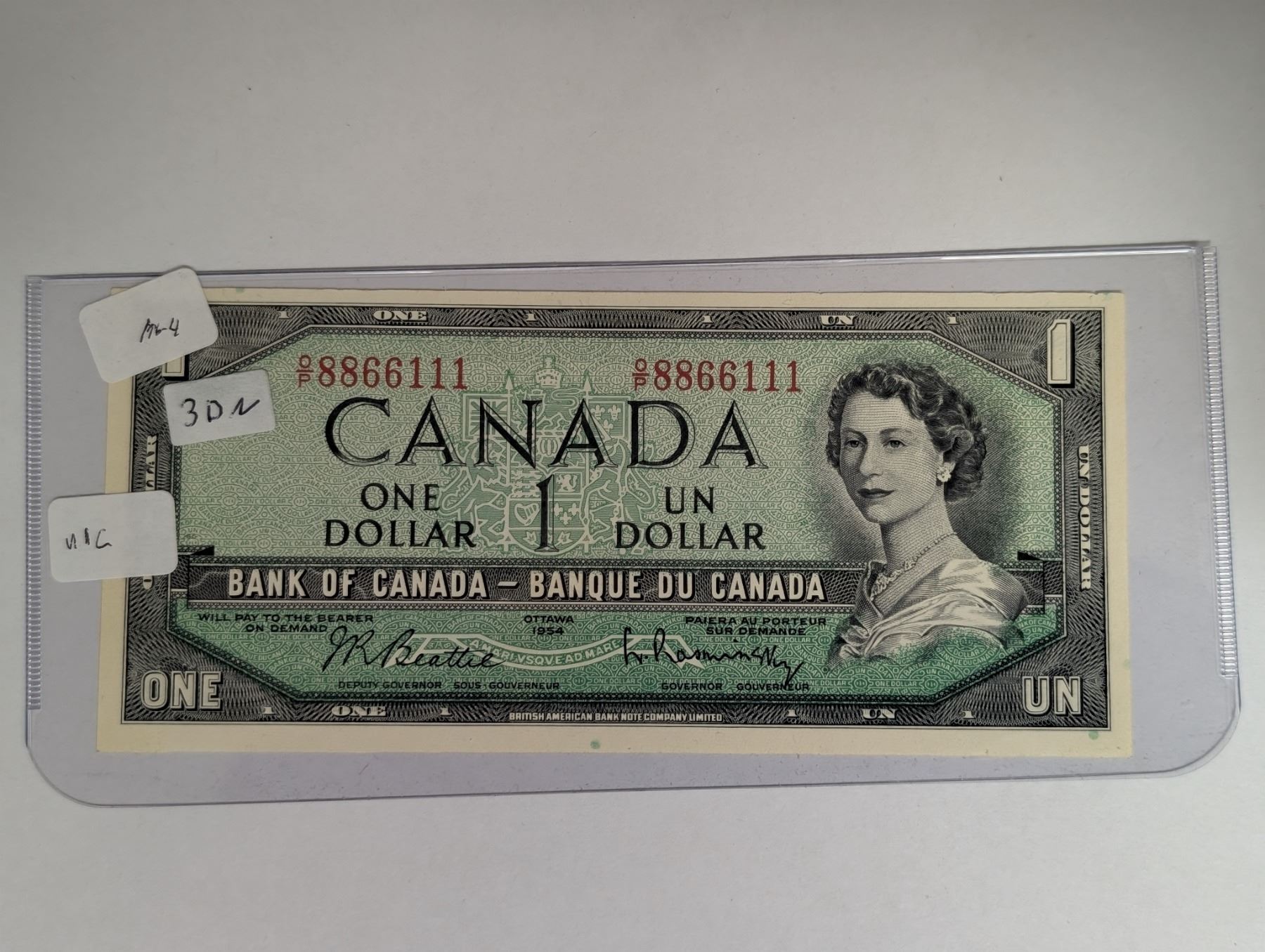 Lot 390 Canadian 1954 1 Dollar Bill M6-4 3DN U/C 8866111
