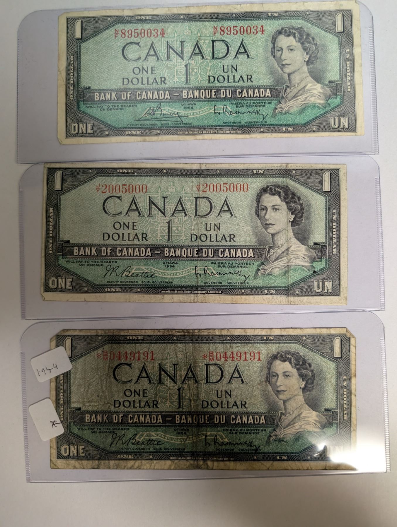 (3) Canadian 1954 1 Dollar Bills 8950034/2005000/0449191