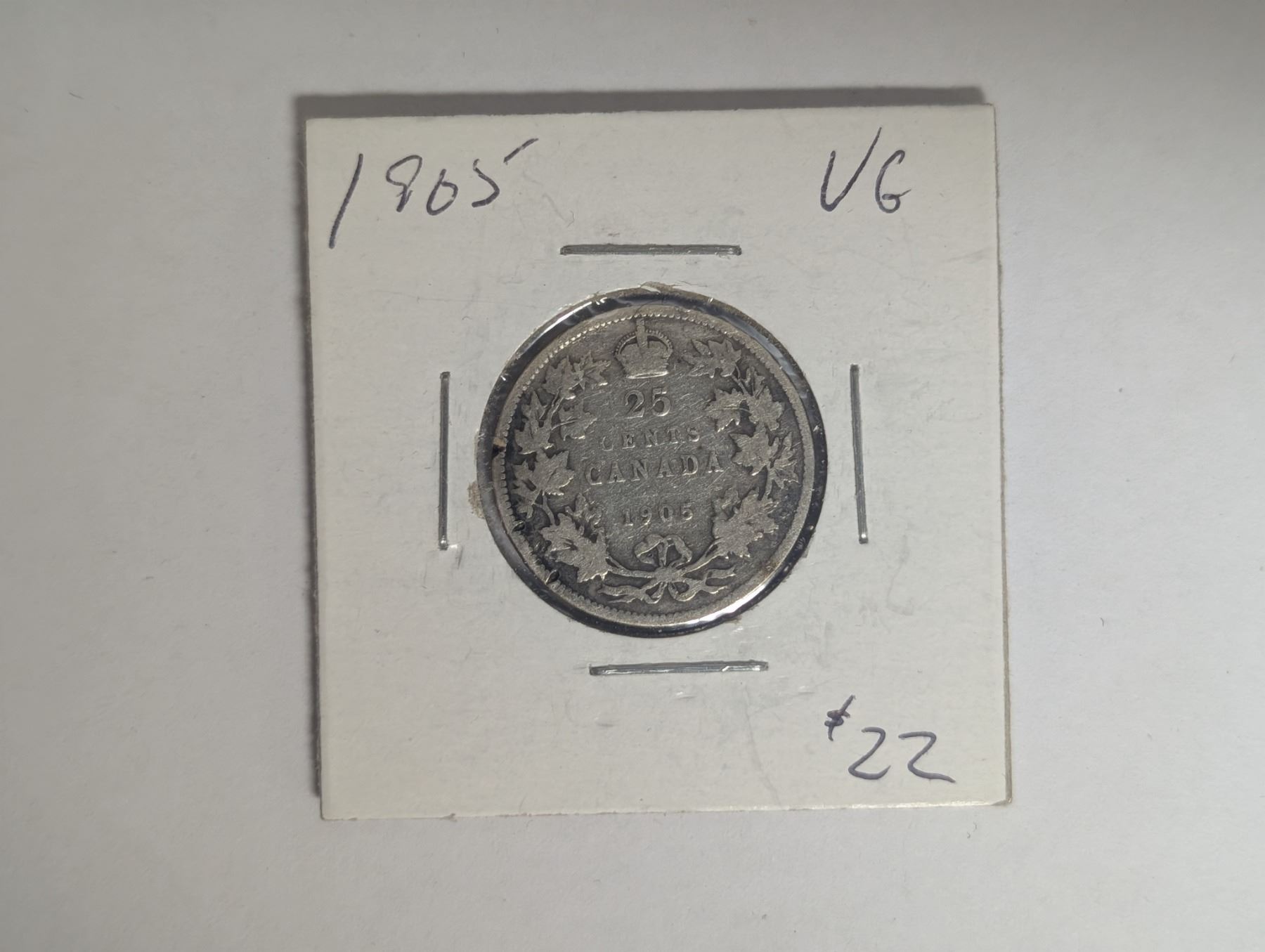 Lot 406 1905 VG Canadian 25 Cent Coin