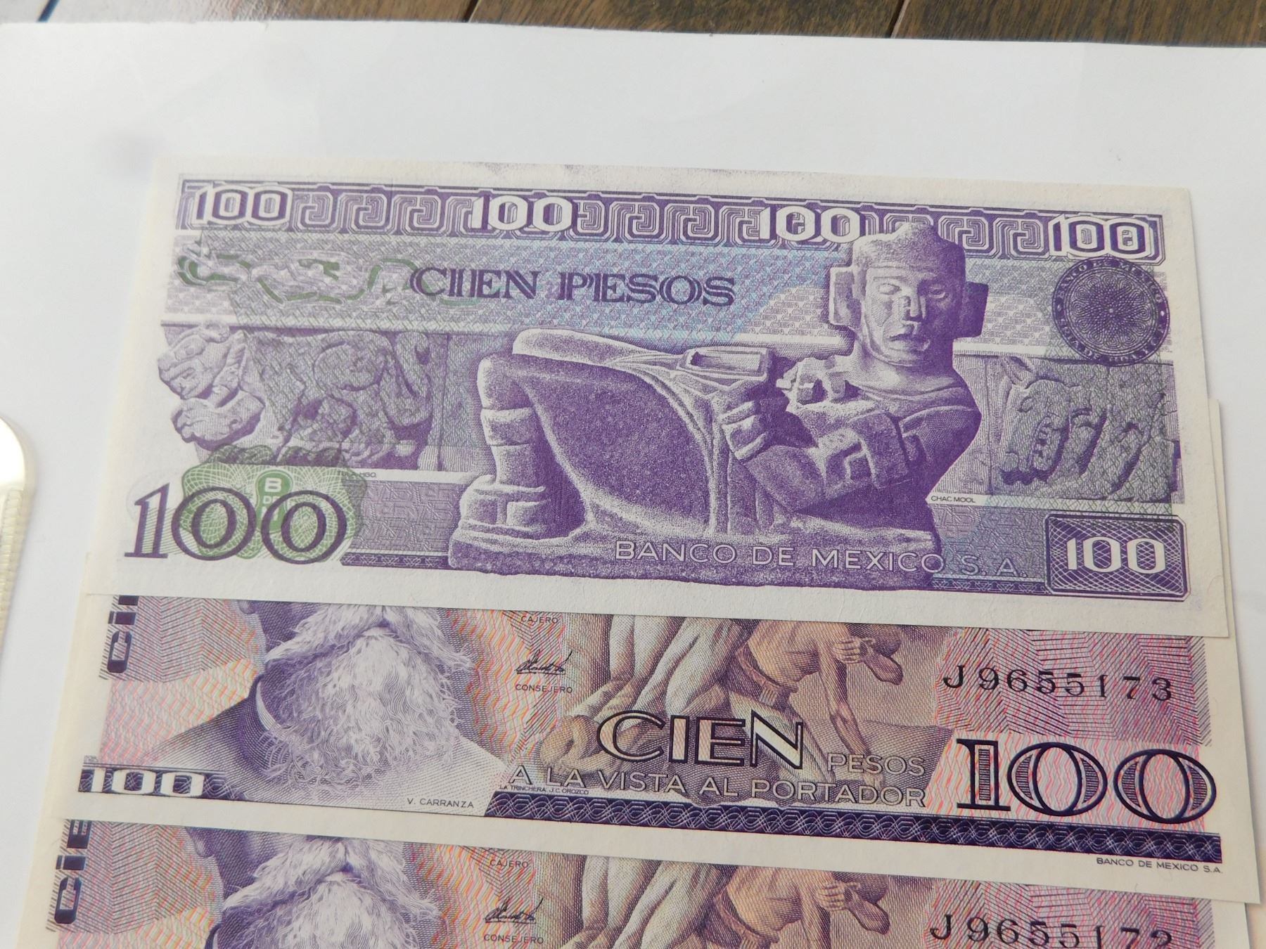 5-CONNSECUTIVE 100 PESO MEXICAN BILLS UNC