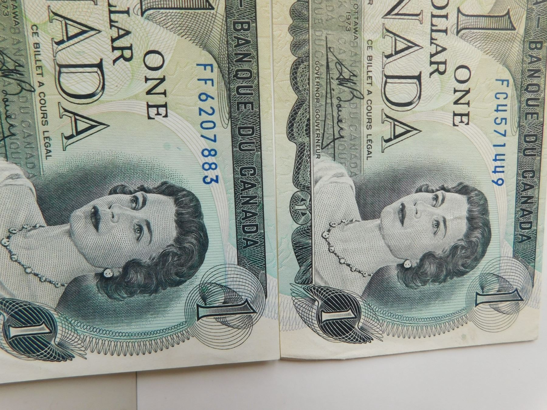 2-1973 2 LETTER PREFIX ONE DOLLAR BILLS BRILLIANT COLOUR