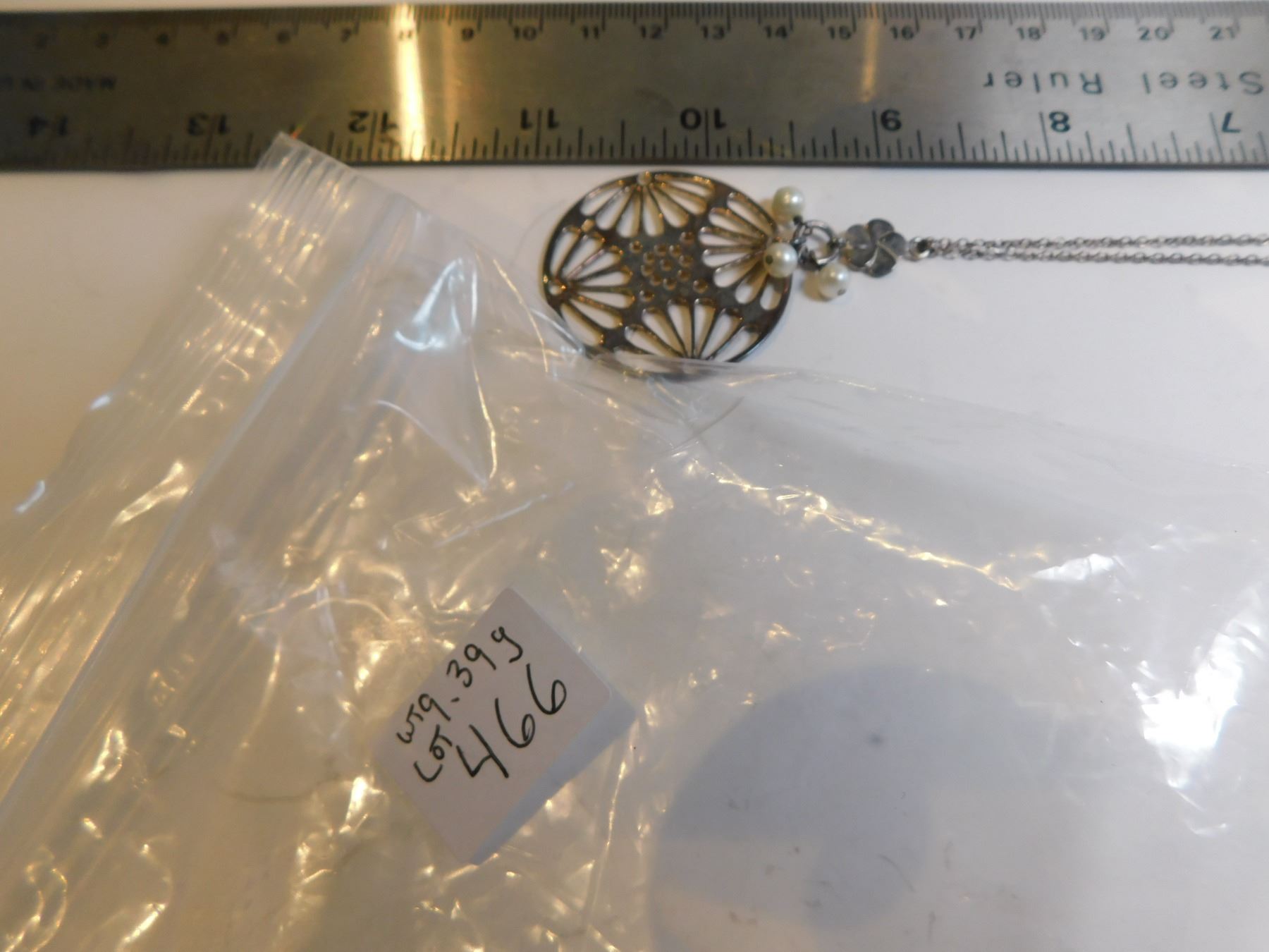Lot 466 STERLING AND PEARL PENDANT AND CHAIN 9.39g
