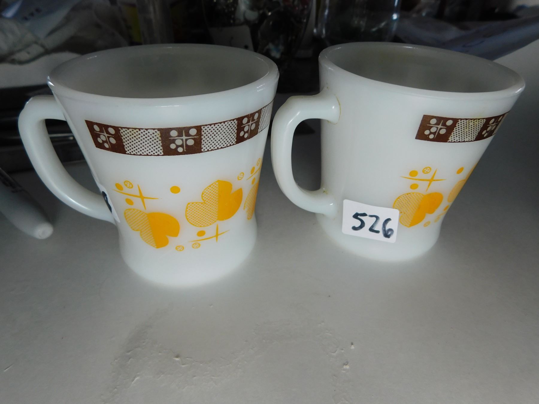 Lot 526 2-FIRE KING SHAMROCK D-HANDLE MUGS