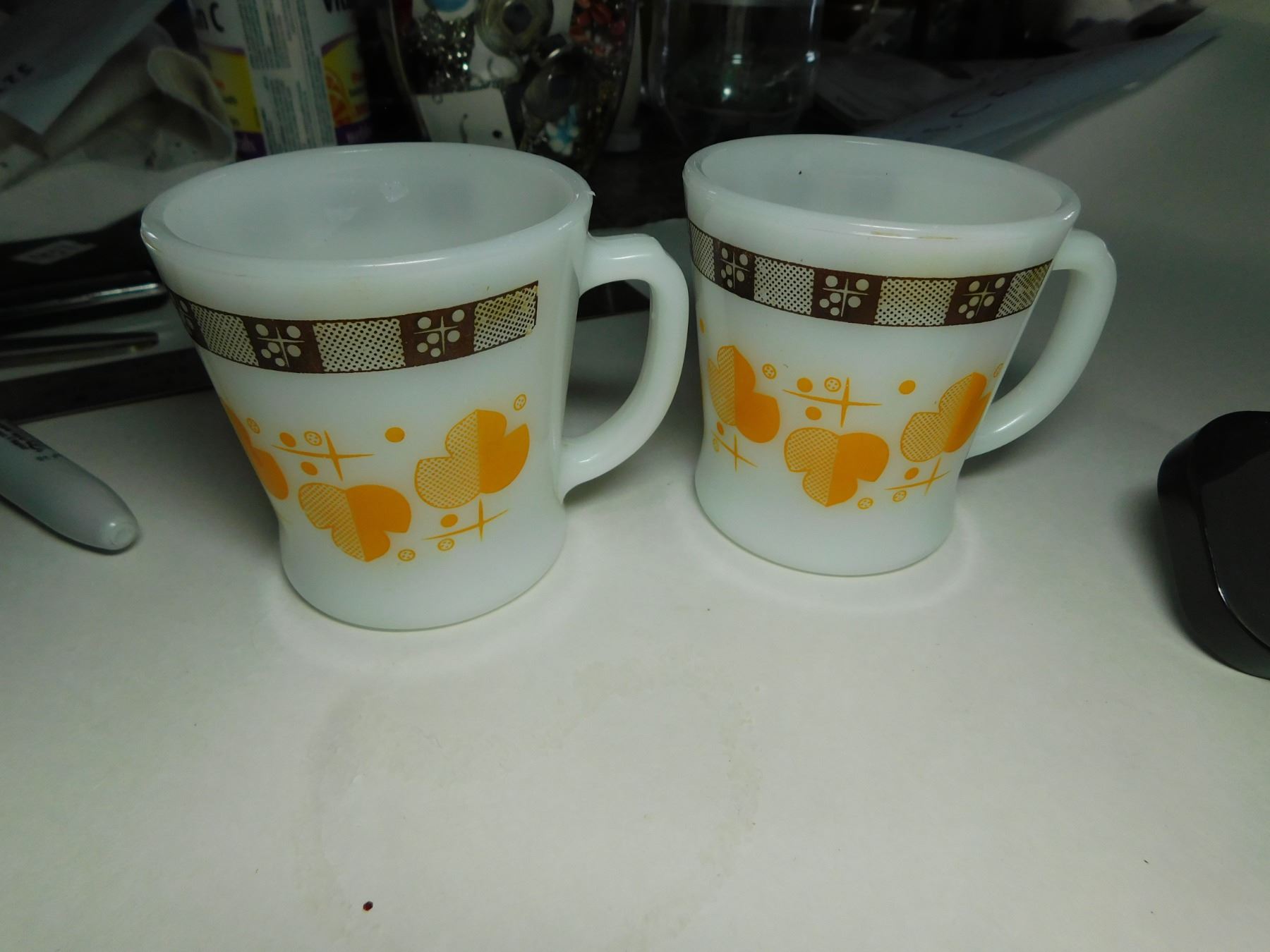 2-FIRE KING SHAMROCK D-HANDLE MUGS