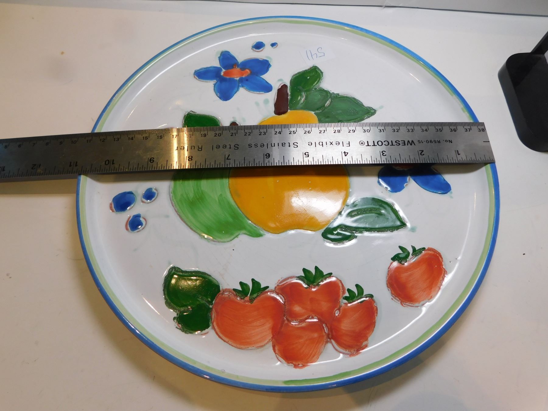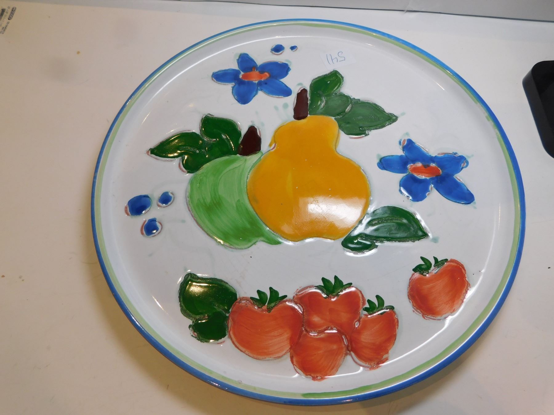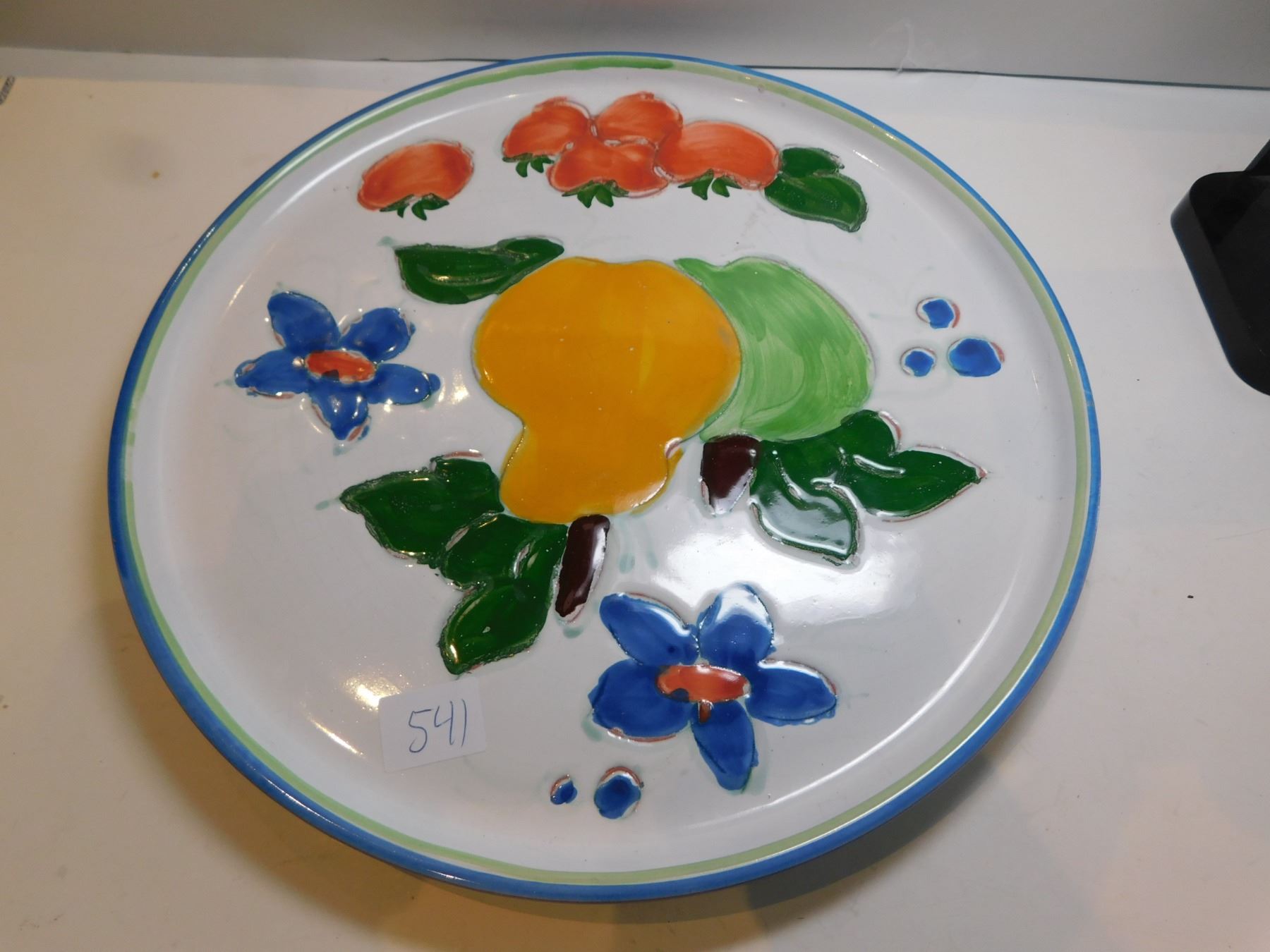 Lot 541 LARGE PORTUEGESE TERRA COTTA SERVING PLATTER, HIMARK FRUIT AND FLOWERS