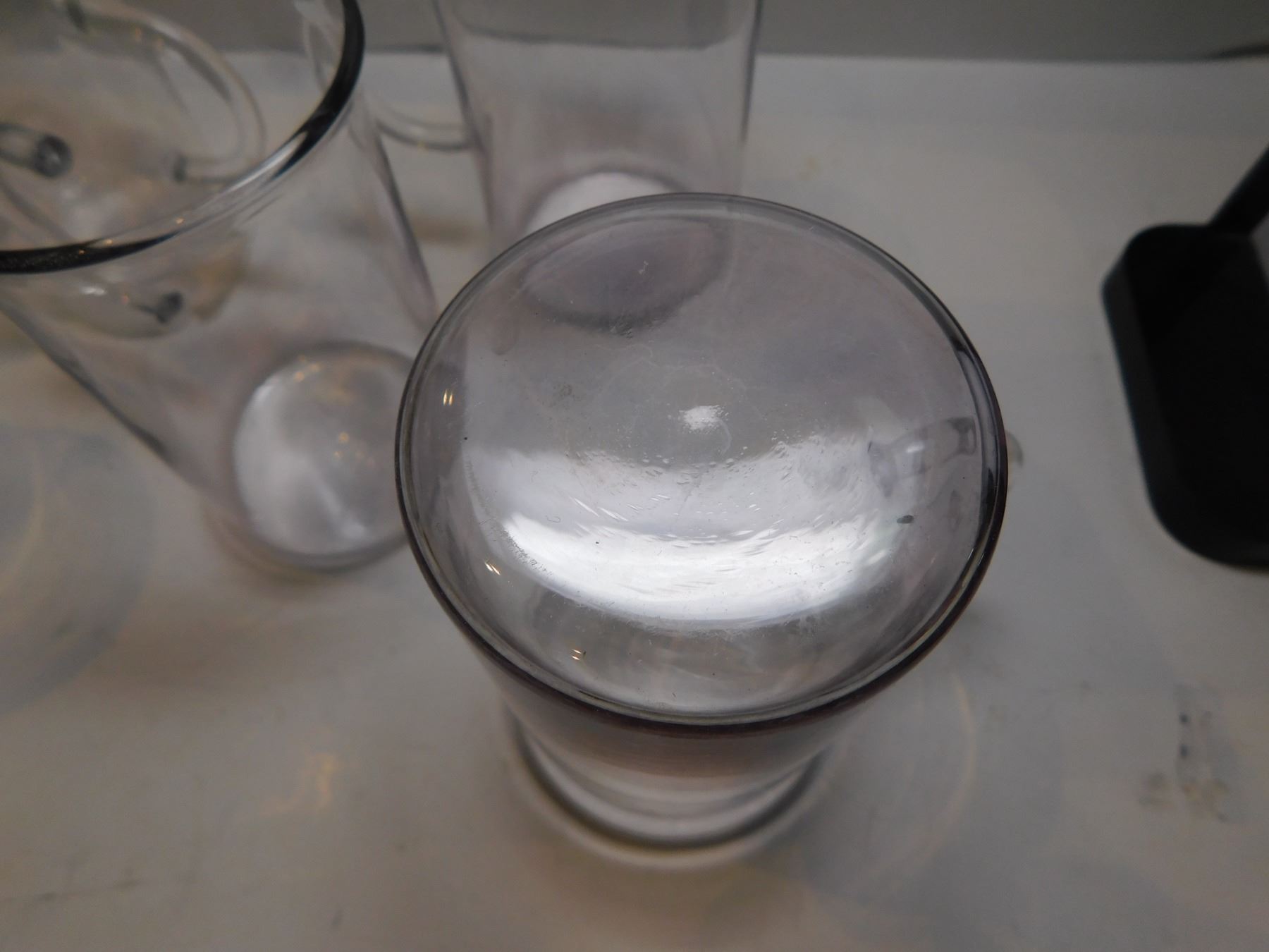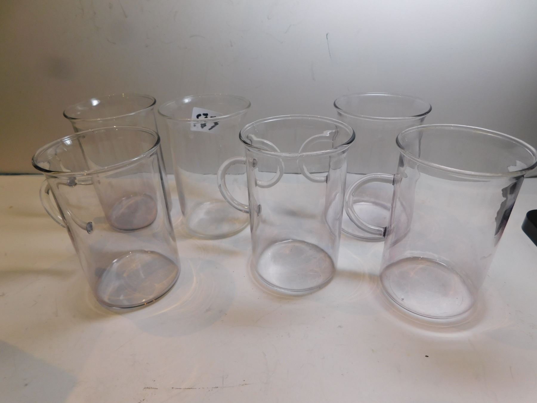 6-DELICATE CUPS WITH HANDLES 5 PURPLE HUE ONE CLEAR