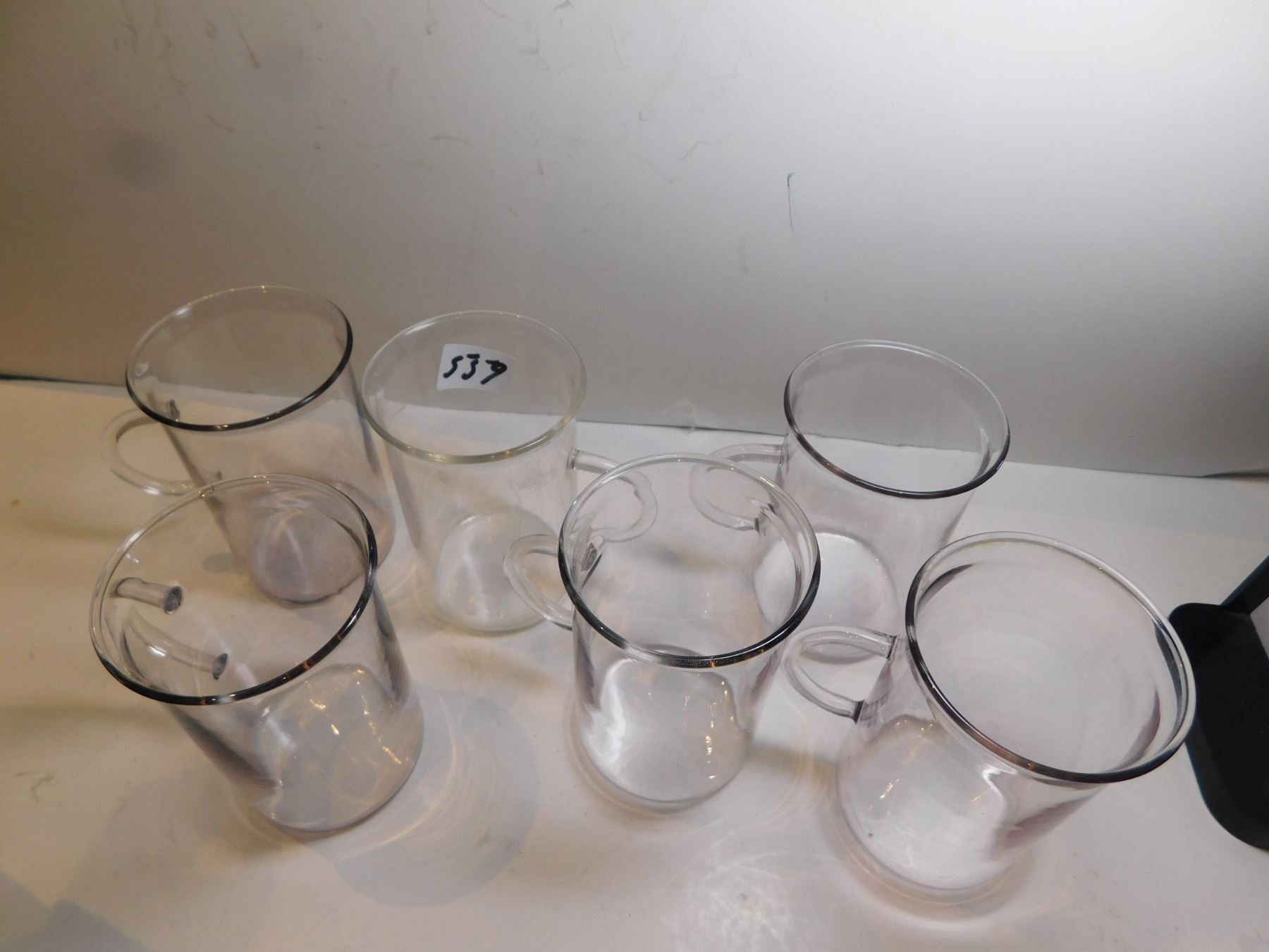 Lot 559 6-DELICATE CUPS WITH HANDLES 5 PURPLE HUE ONE CLEAR
