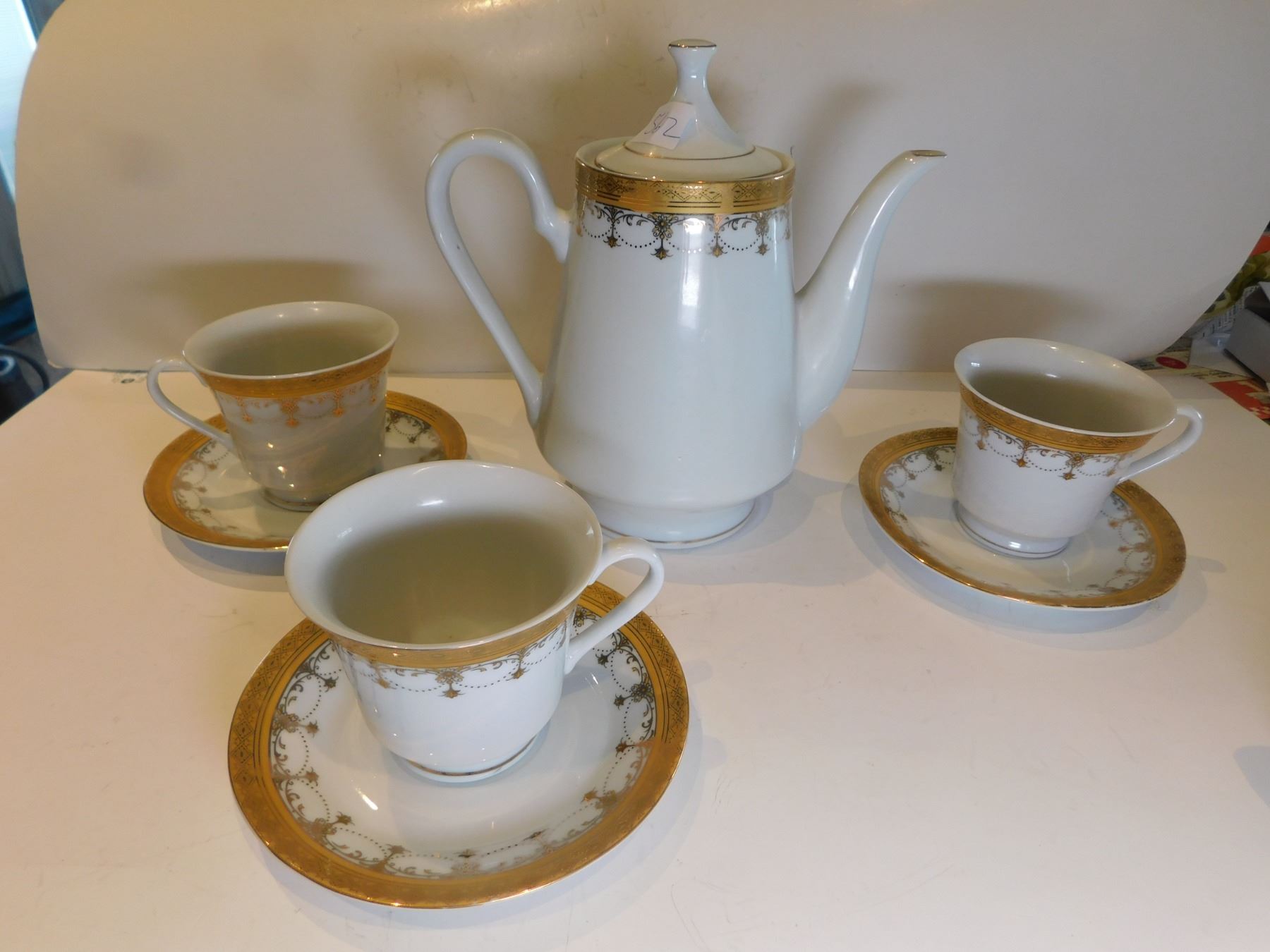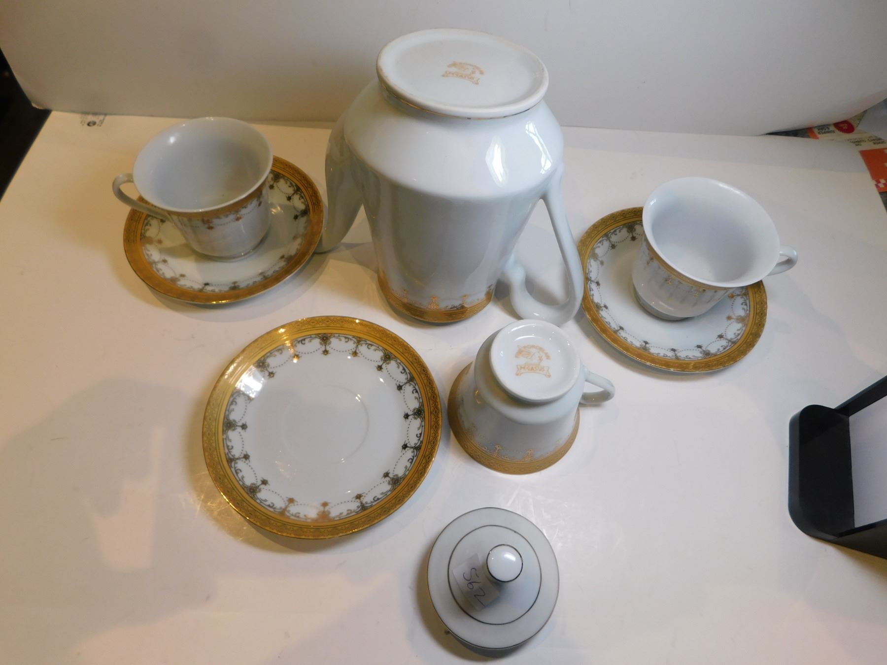 Lot 562 PEGASUS TEAPOT WITH 3 CUPS AND SAUCERS