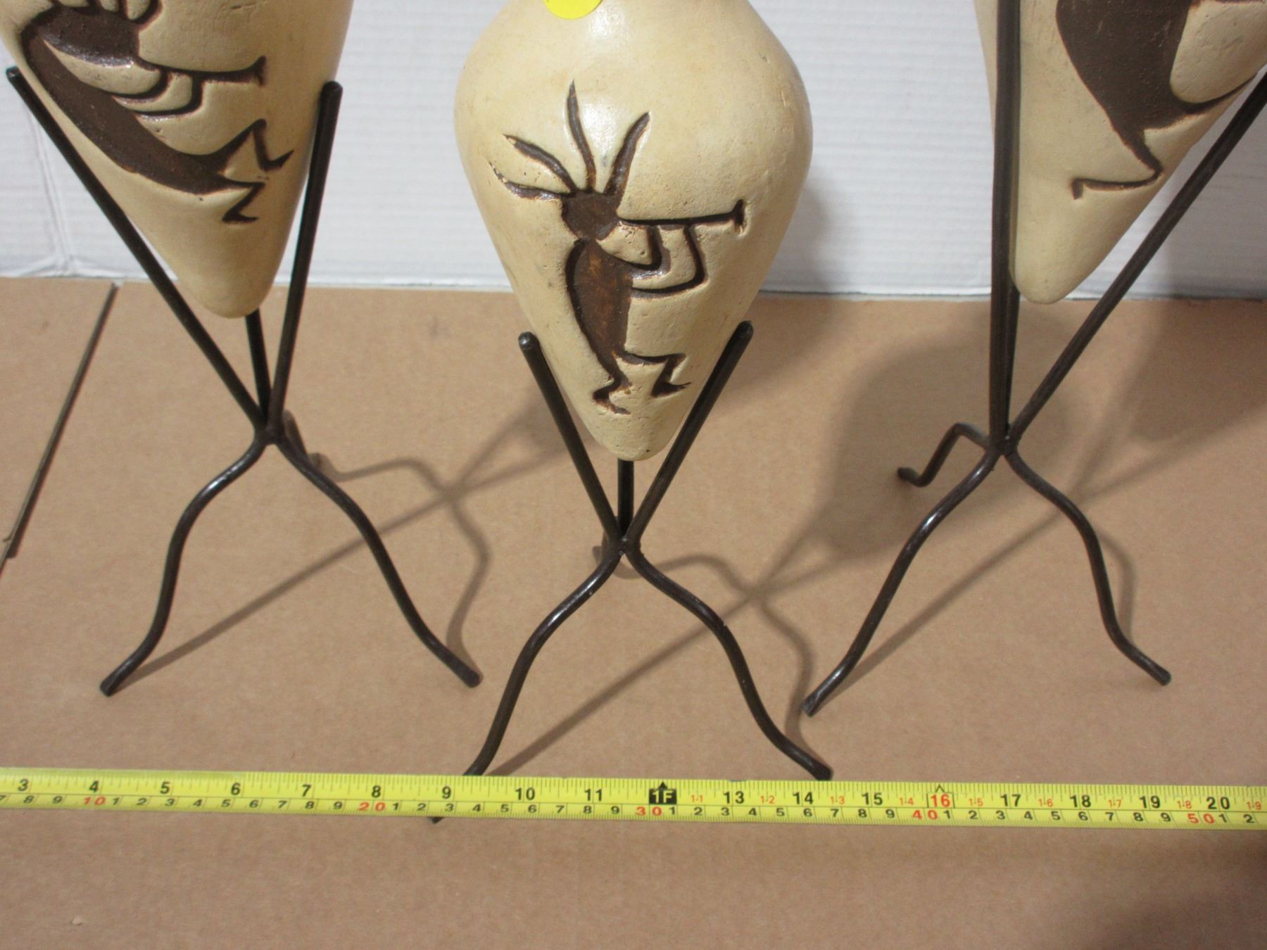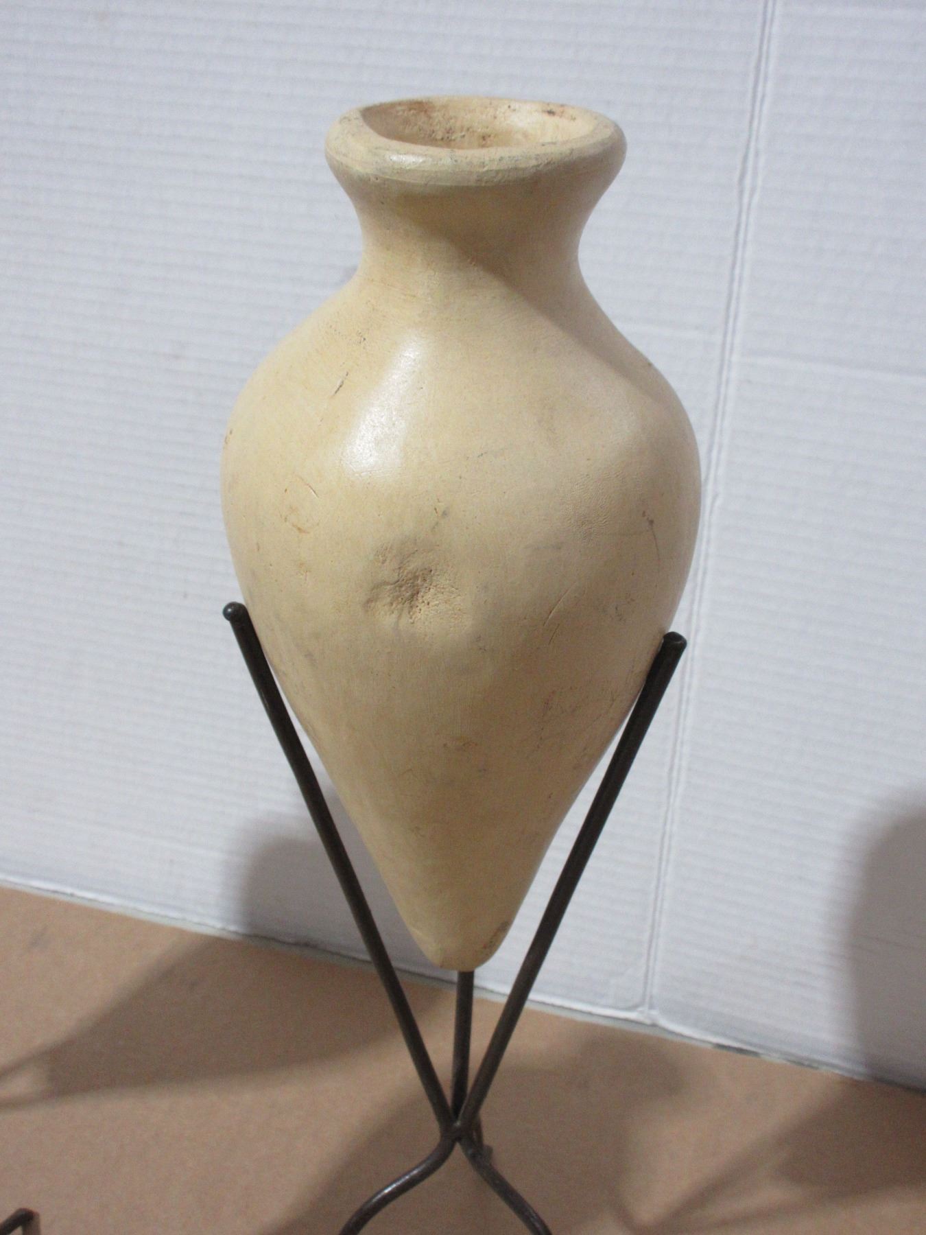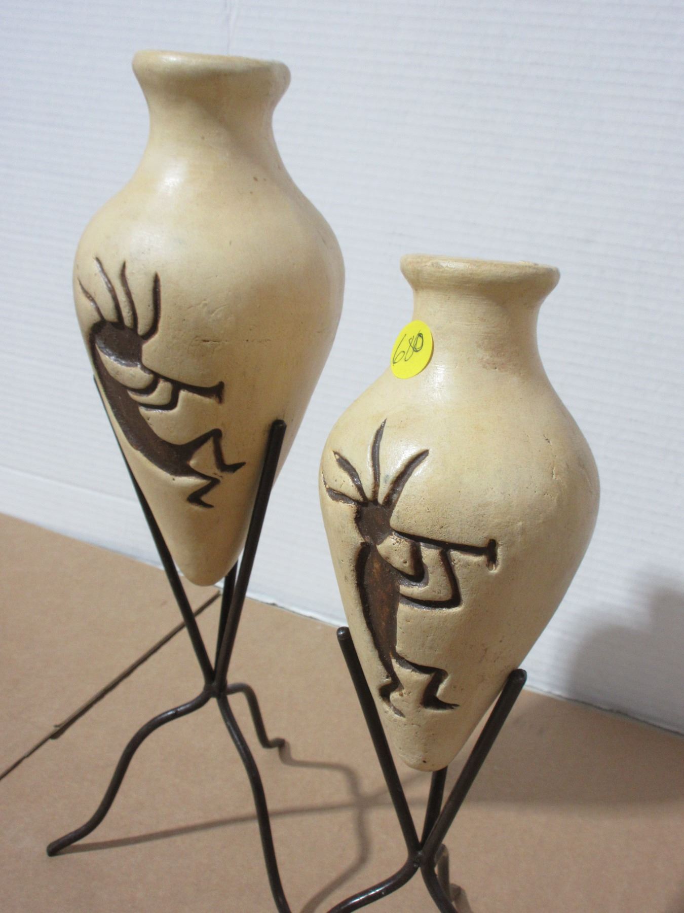 Lot 680 3 Clay Uases In Racks. (3 Different Sizes)