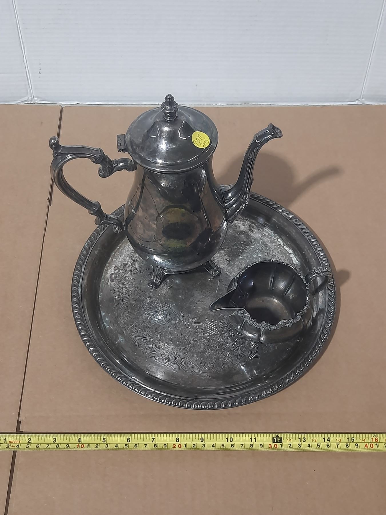 WM Rogers S.P Tea Pot, Creamer and Platter.