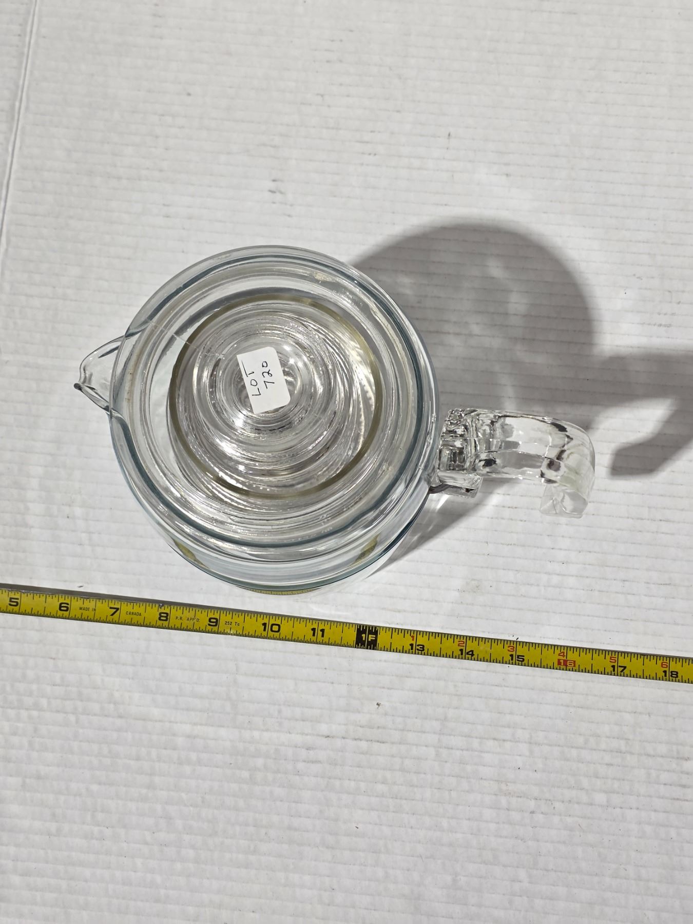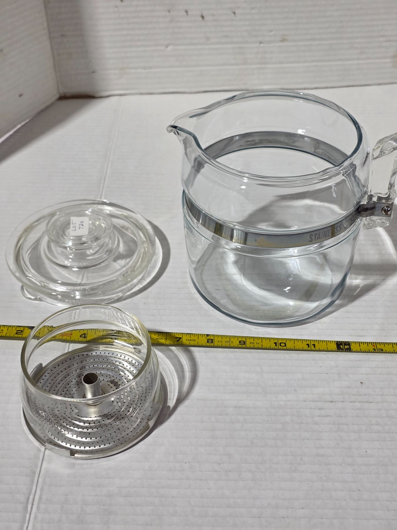 Lot 720 6 cup pyrex coffee pot- chip inside lid- has a glass stem