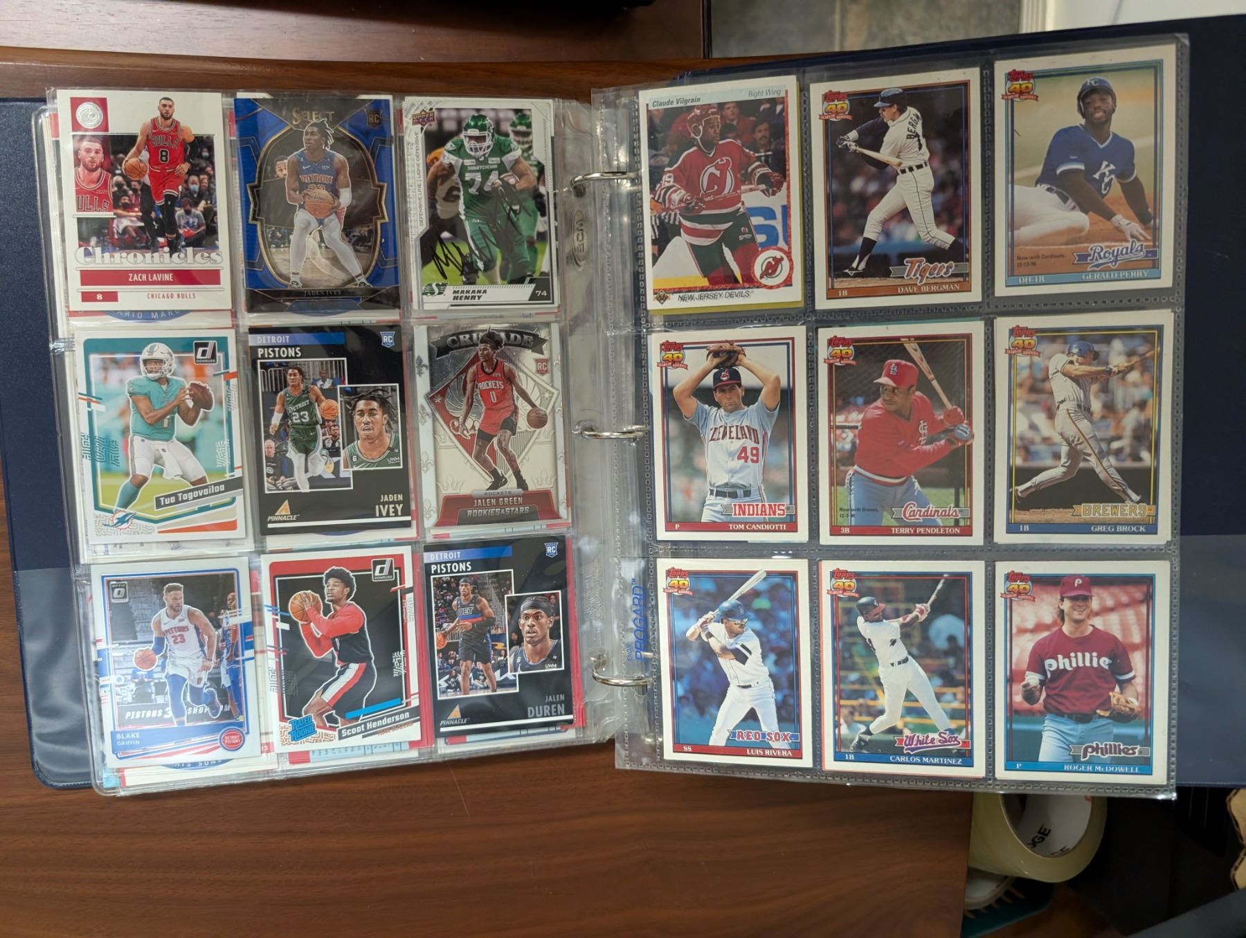 Binder of vintage Basketball, Hockey, and Baseball Sports Cards as Shown.