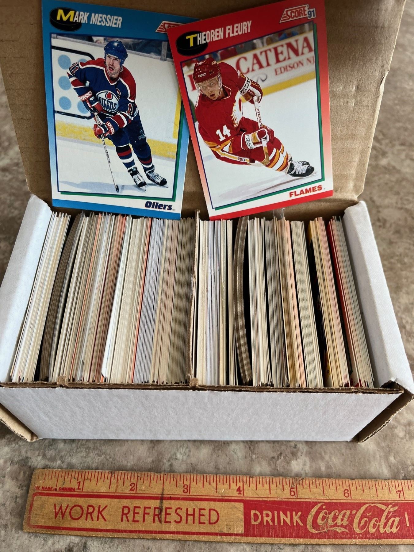 Battle of Alberta. Lot of 300ish Calgary Flames & Edmonton Oilers hockey cards. Mixed Brands. Mixed Years. Messier. Kurri. Vernon. Fleury.