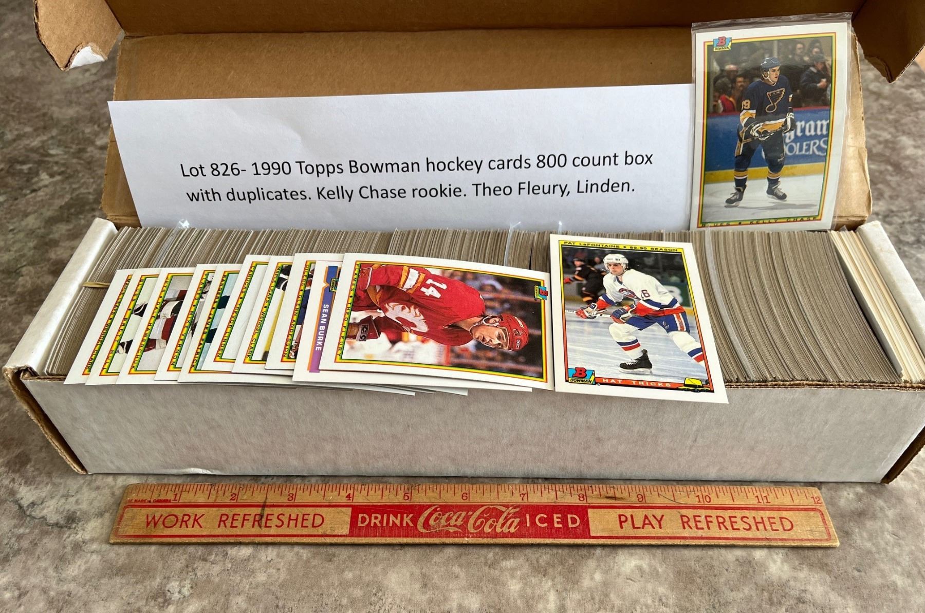 Lot 826 1990 Topps Bowman hockey card lot. 800 count box with duplicates.