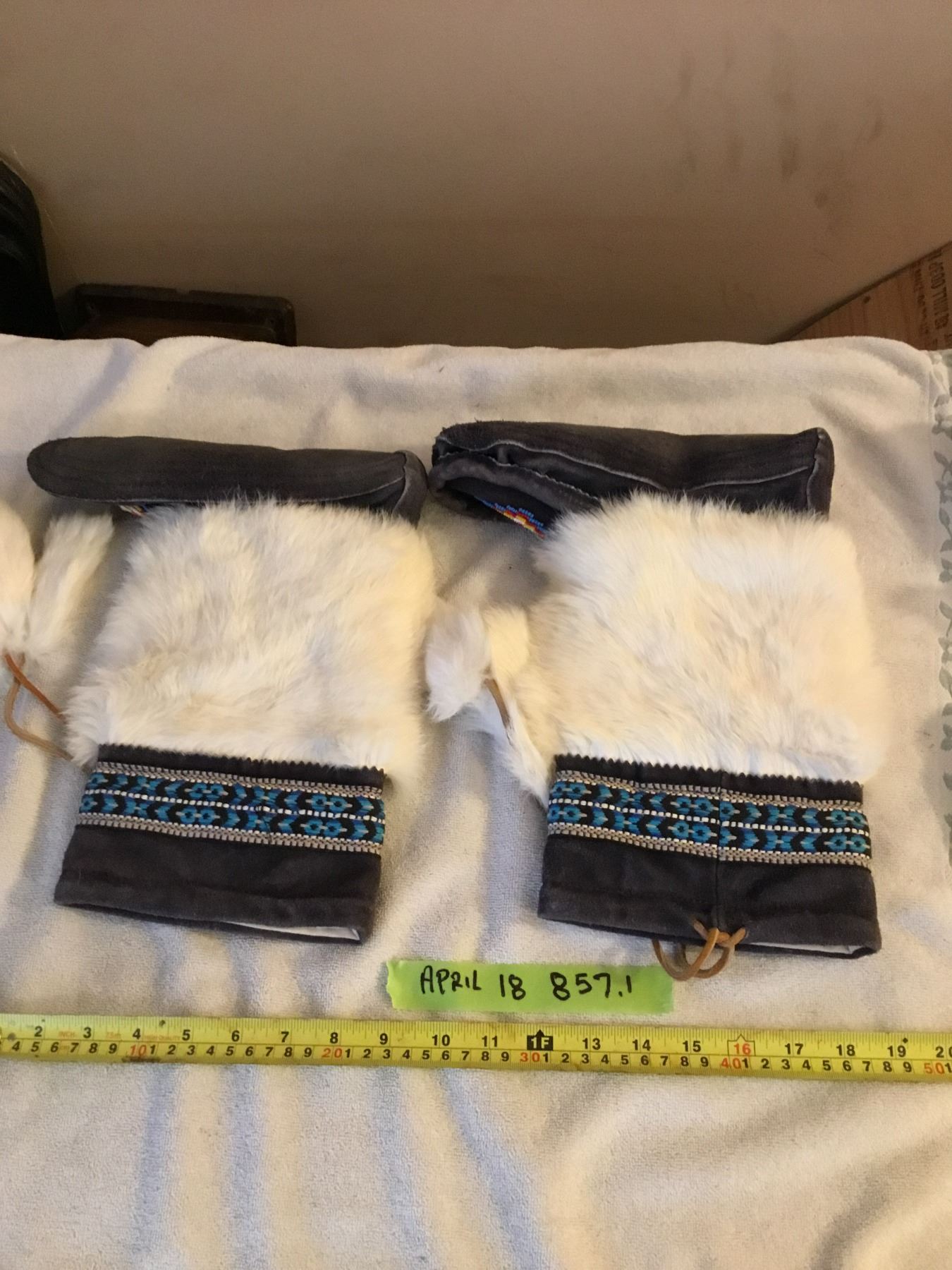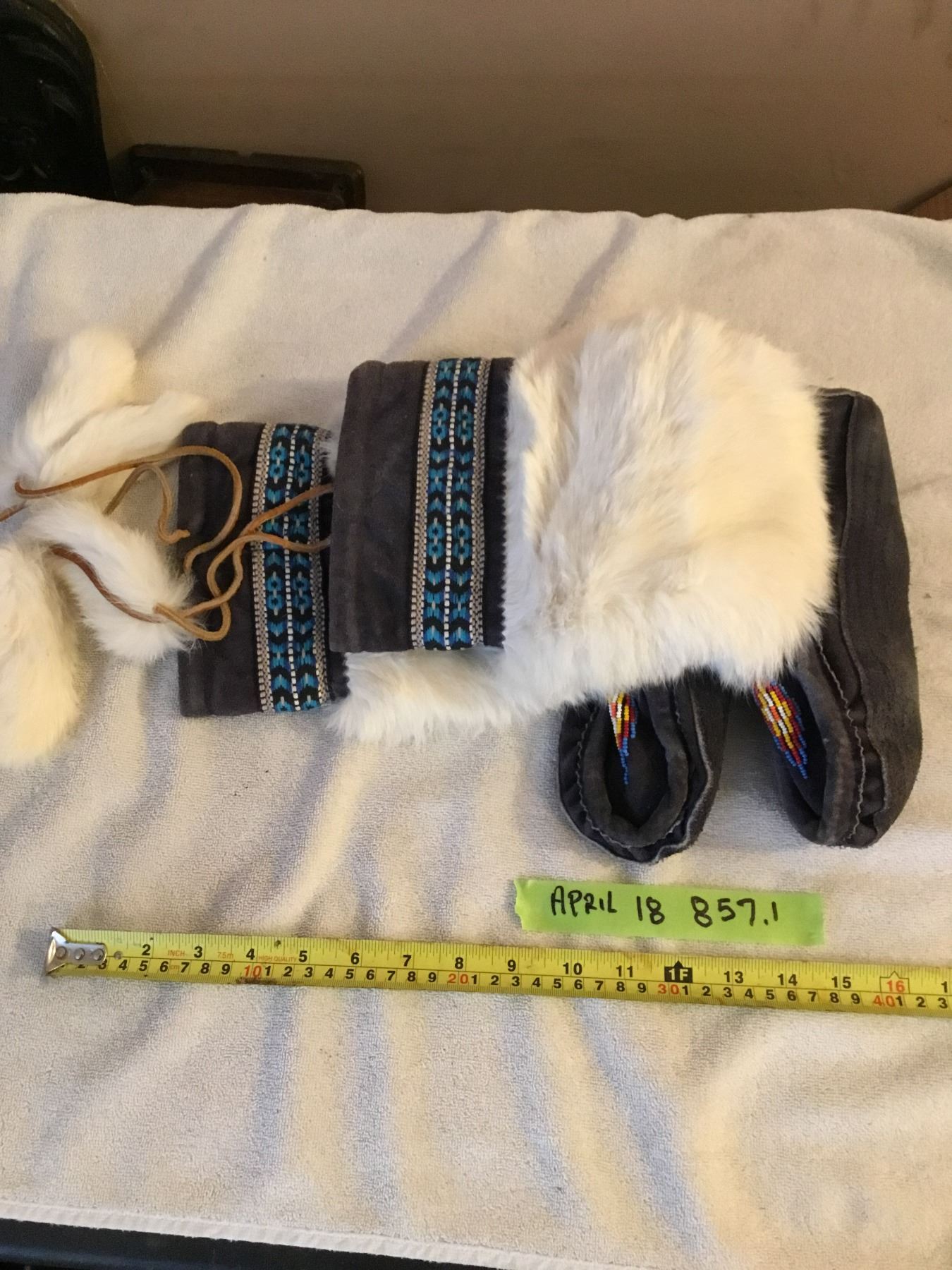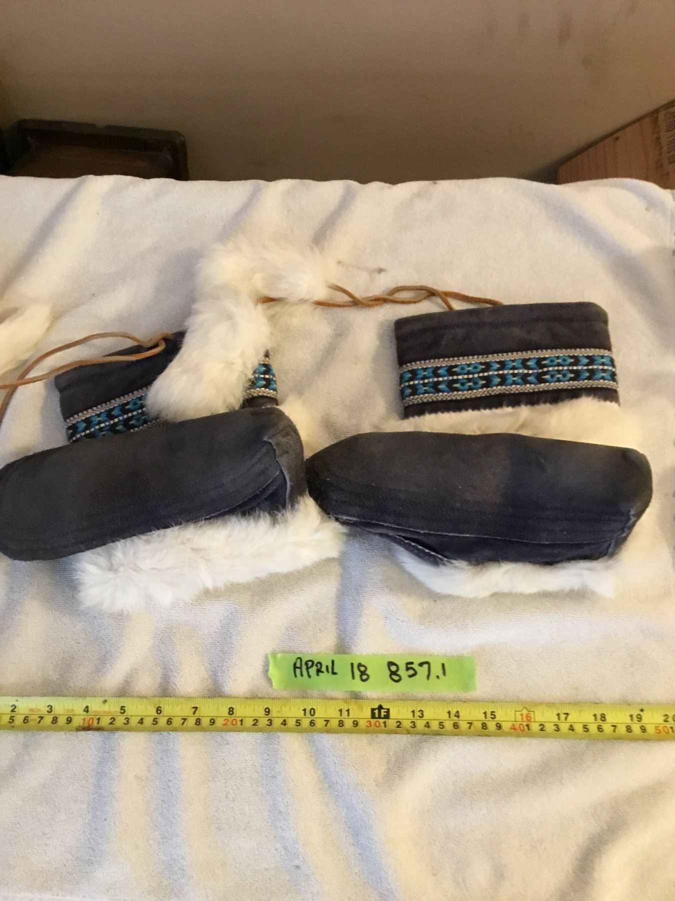 Lot 857 Mukluks rabbir fur- very clean- size 9.5" heel to toe