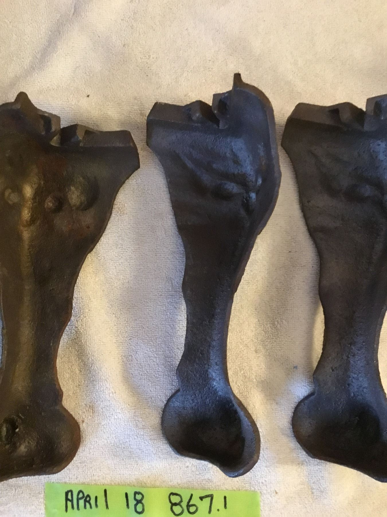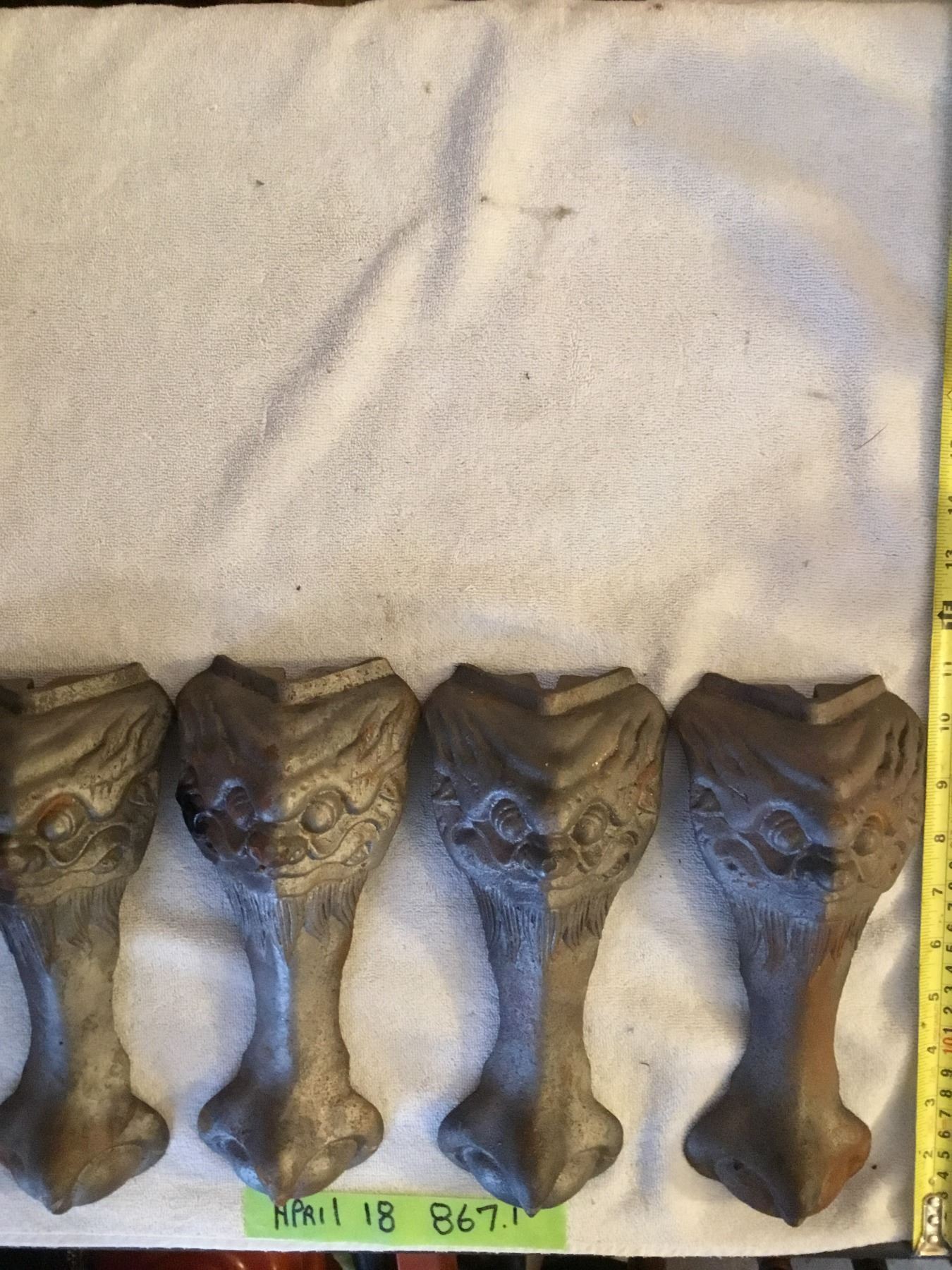 Lot 867 Cast lions face stove legs- 10"H