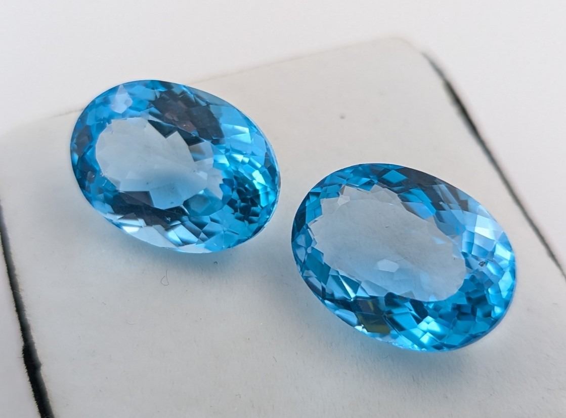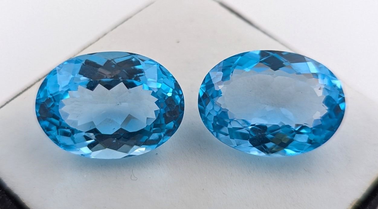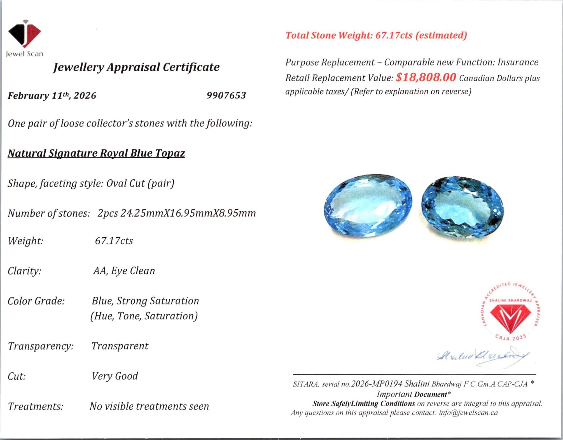 67.17 ct Certified Royal Blue Topaz gemstone Pair ($18,808 Appraisal)