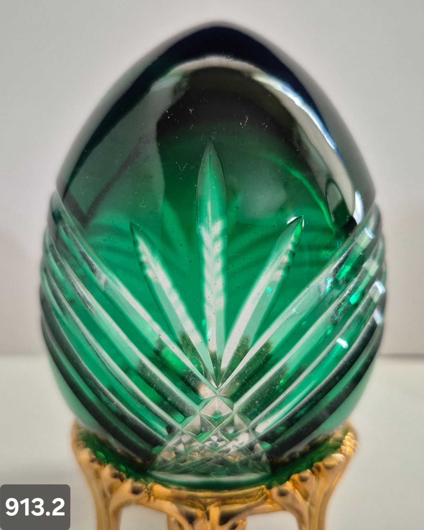Lot 913 913. Pair of Bohemian cut glass MCM eggs - 24k gold-plated stand, from a large collection