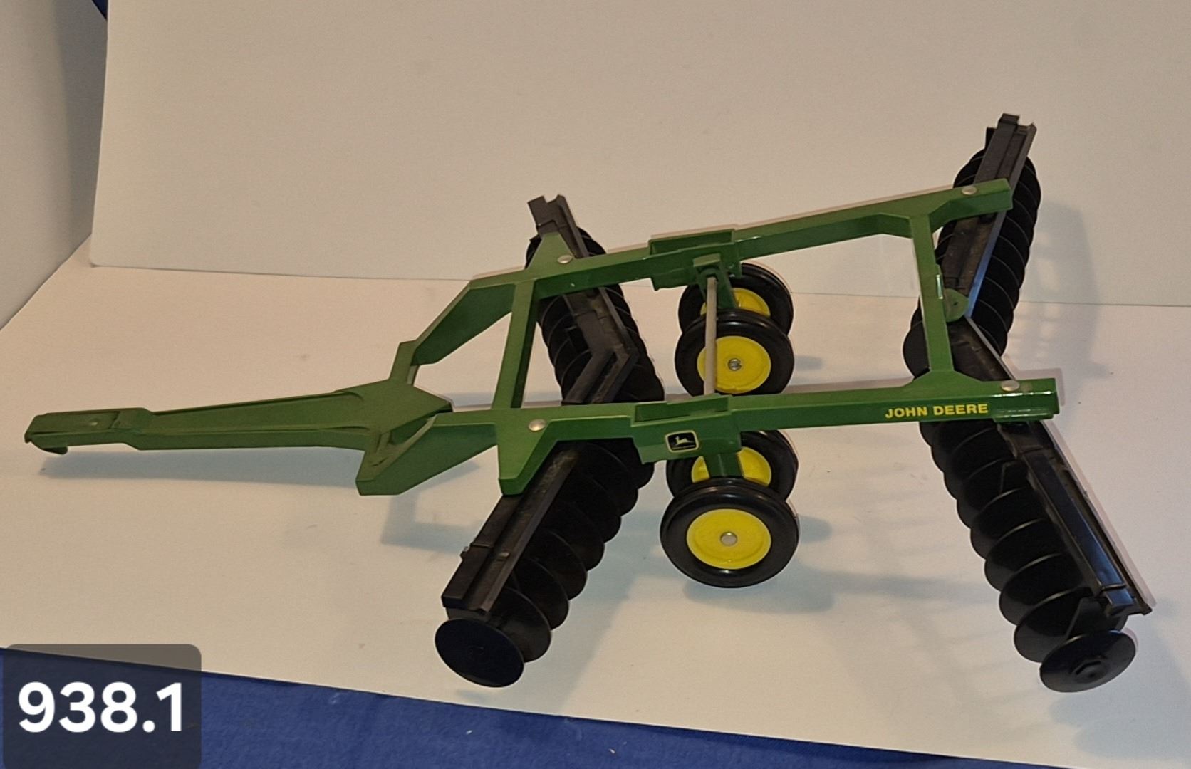 Lot 938 938. John Deere tandem disc - mint condition, from the 80s or 90s, 14 1/2 inches. (Diecast Metal)