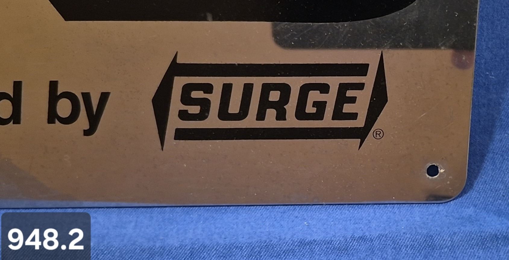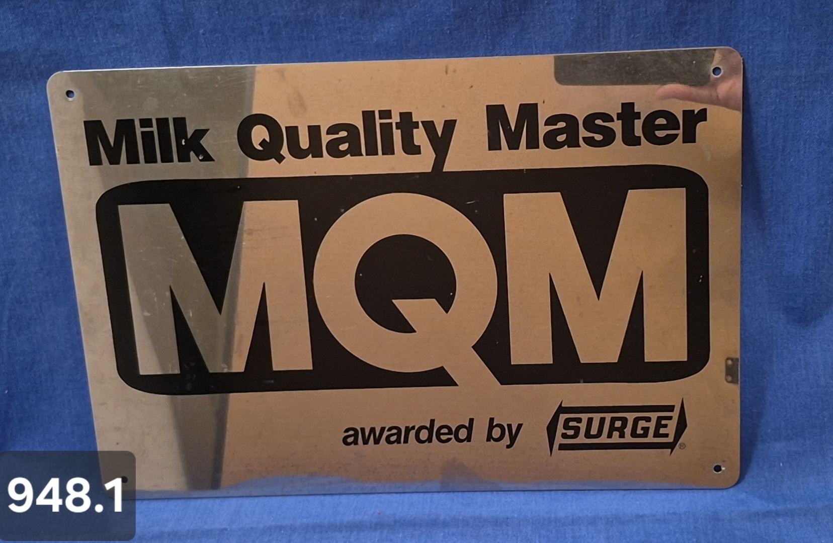 Lot 948 948. Surge Milking machine sign - chrome and black on front (can't tell from pics), excellent condit