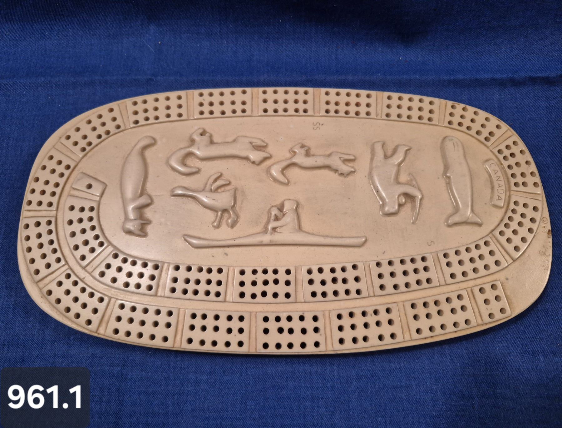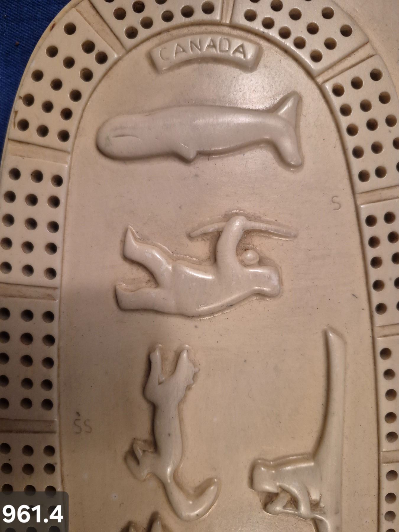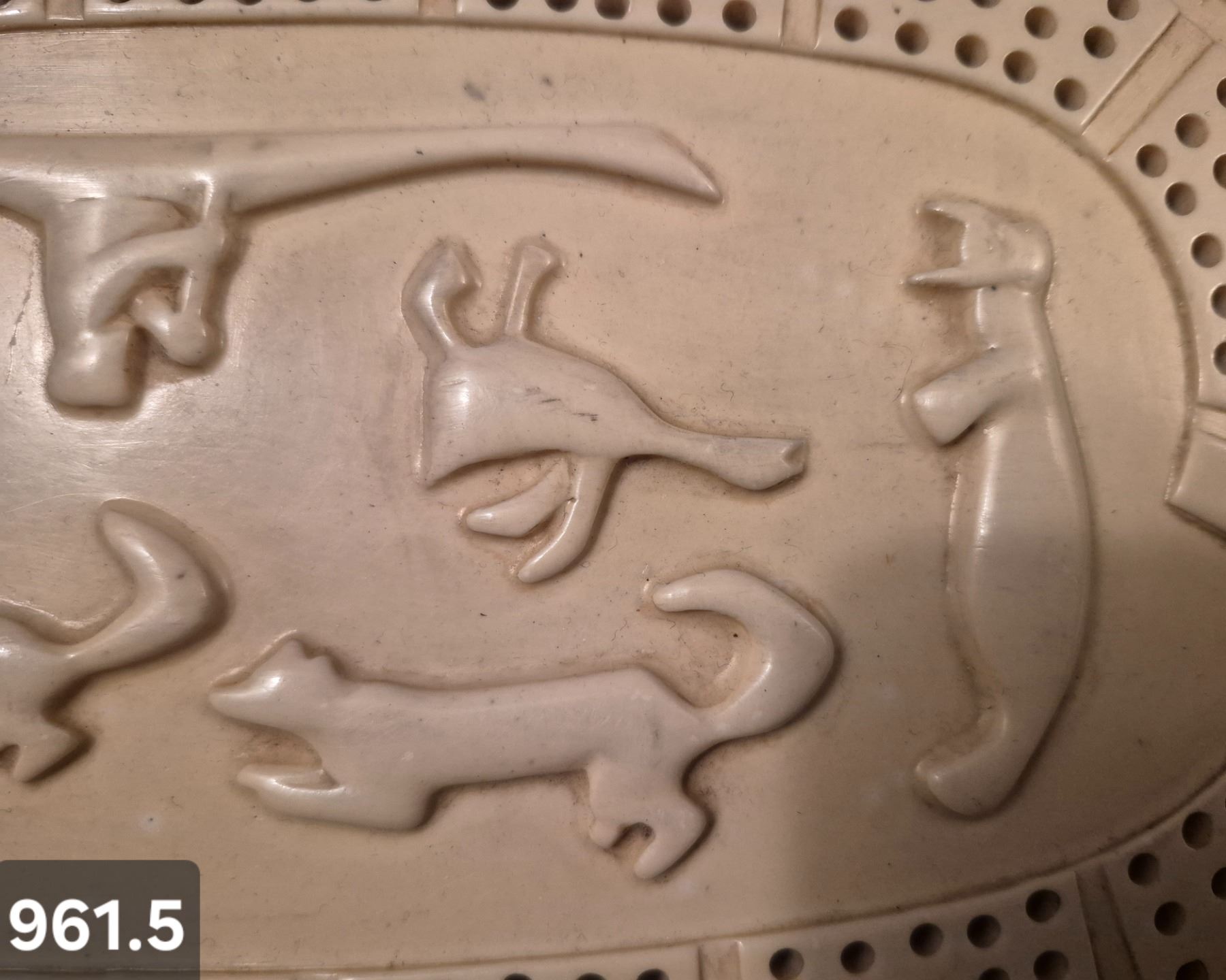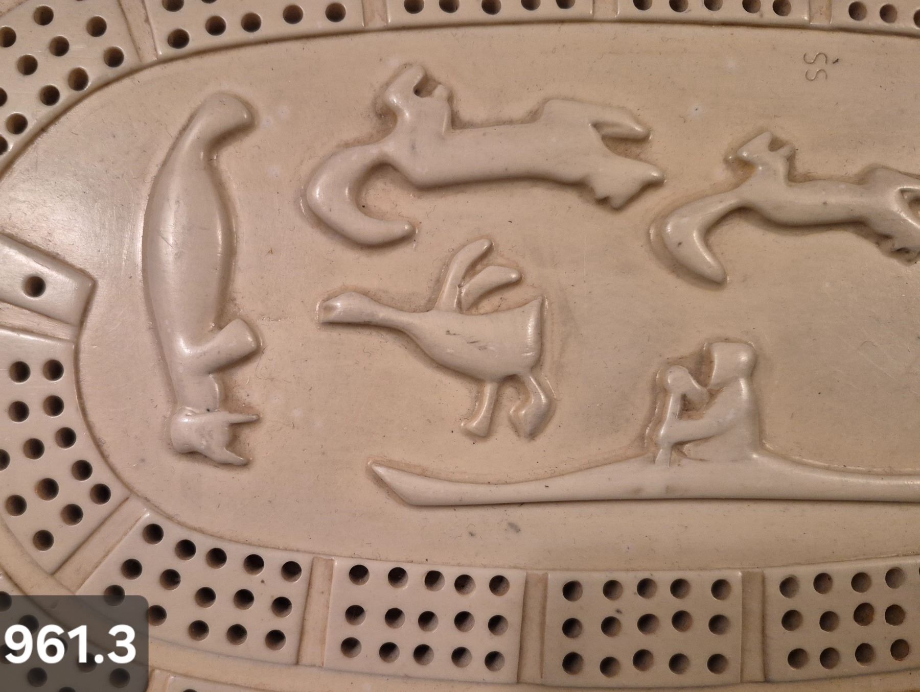 961. Inuit carving - cribbage board, signed by maker, excellent condition