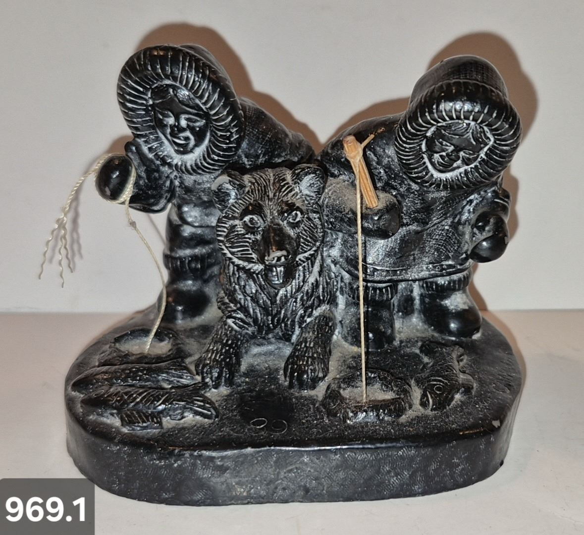 969. Inuit carving - 2 Inuit fishing, 3 3/4 by 4 inches, excellent condition