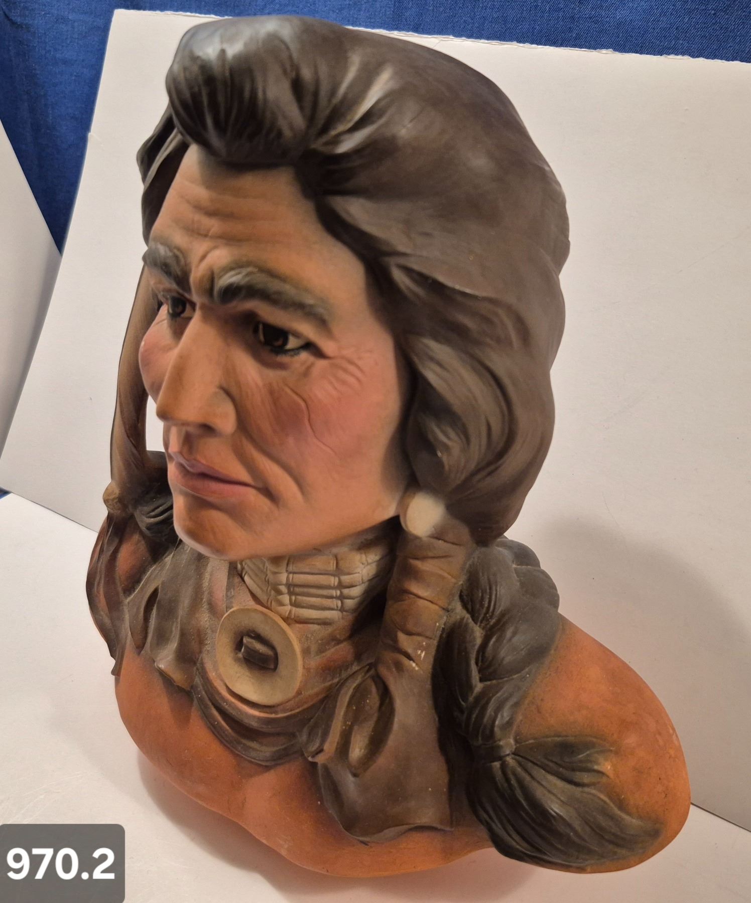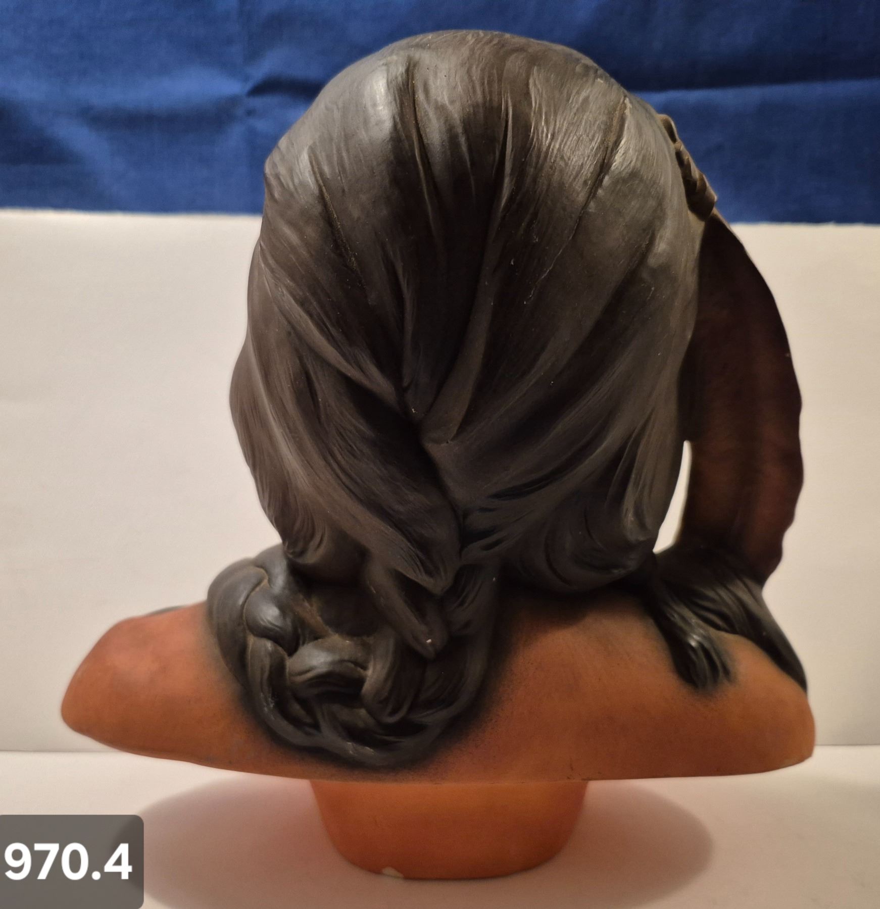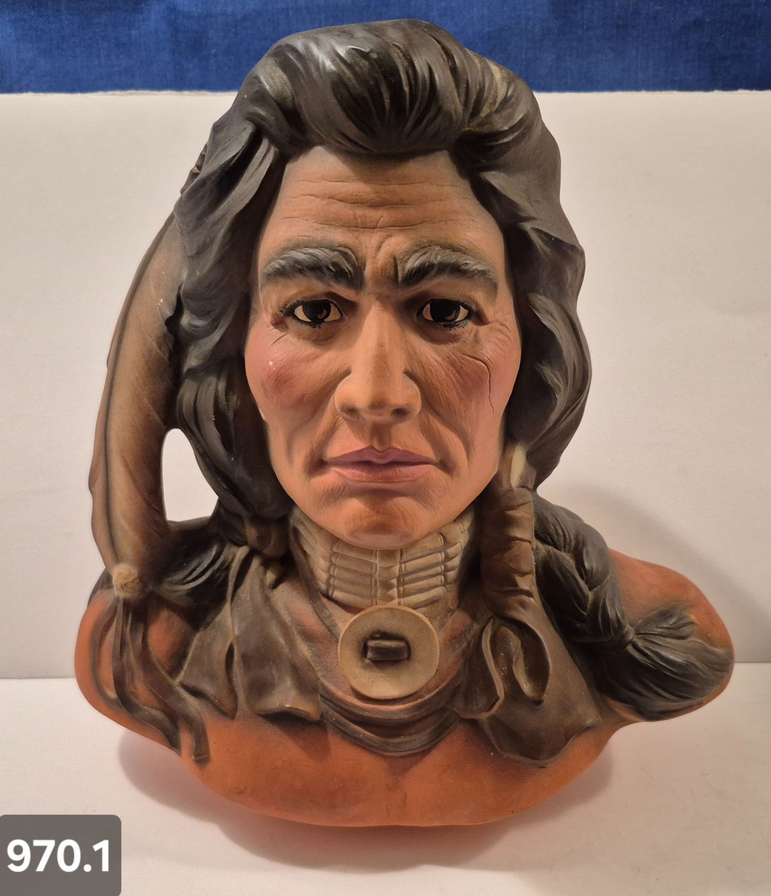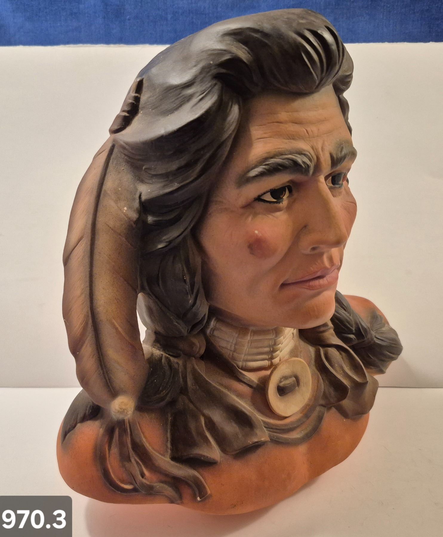 Lot 970 970. Large Native American bust of an Indian warrior, 11 1/4 inches tall, 2 small flakes on the rear
