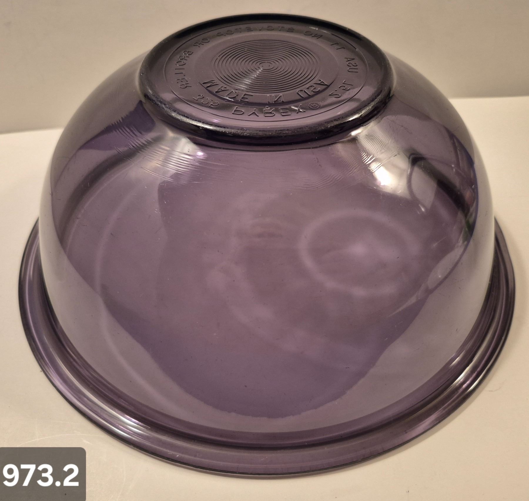 973. Purple Pyrex glass mixing bowl, approx. 10 inches across, 4 inches deep, no damage