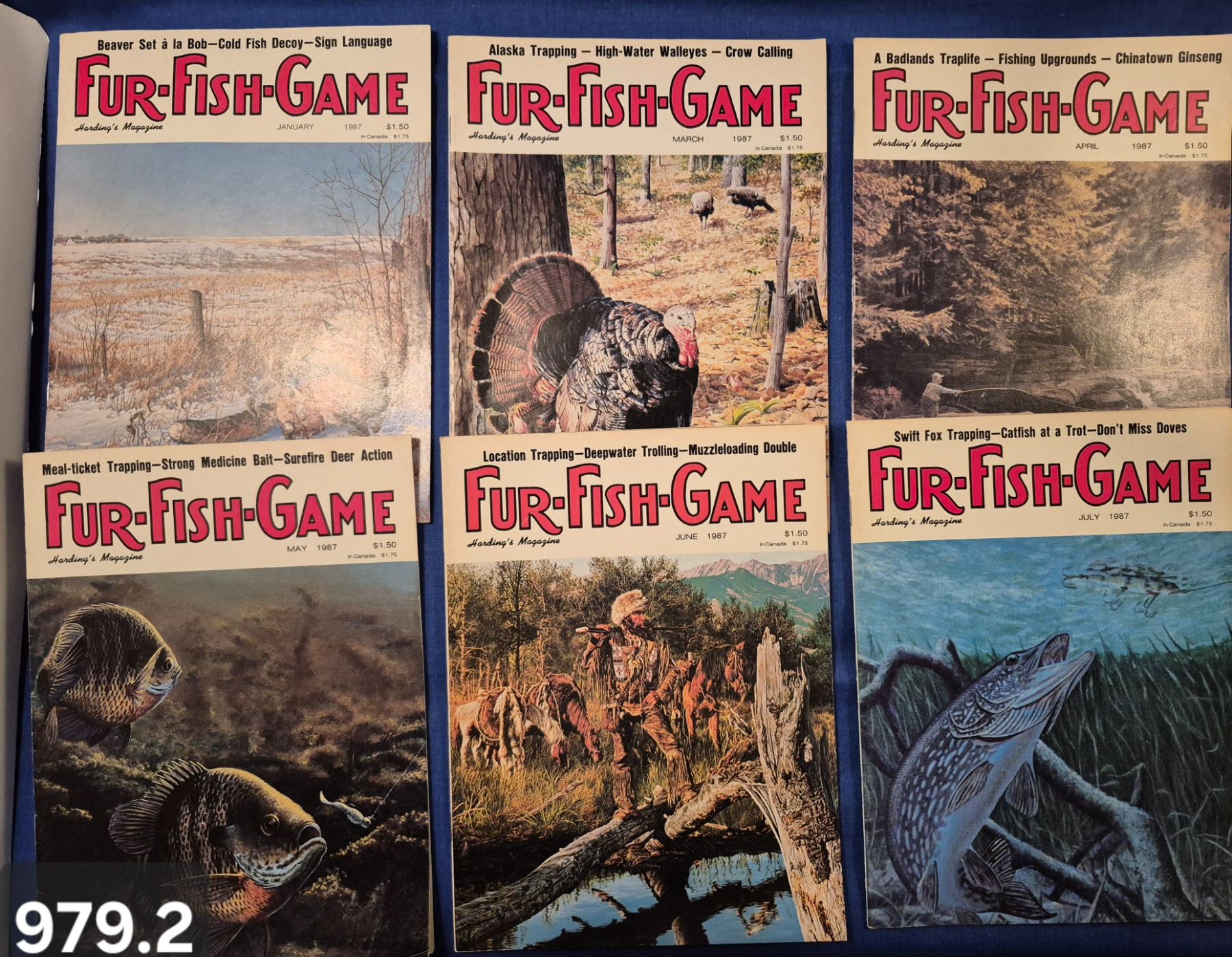 Lot 979 979. 10 Issues of 1987 Fur-Fish-Game outdoor sporting magazines, most in excellent flat condition, l
