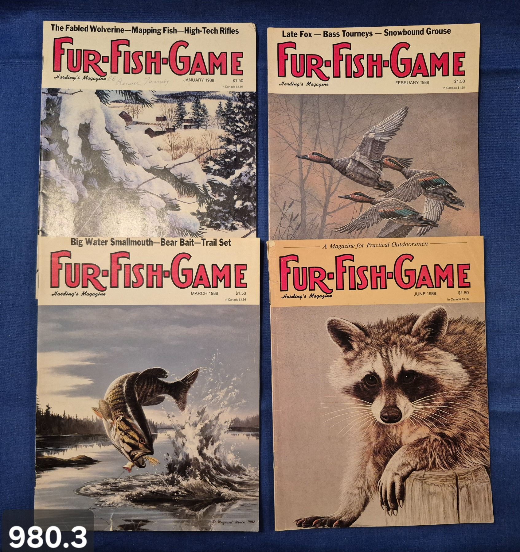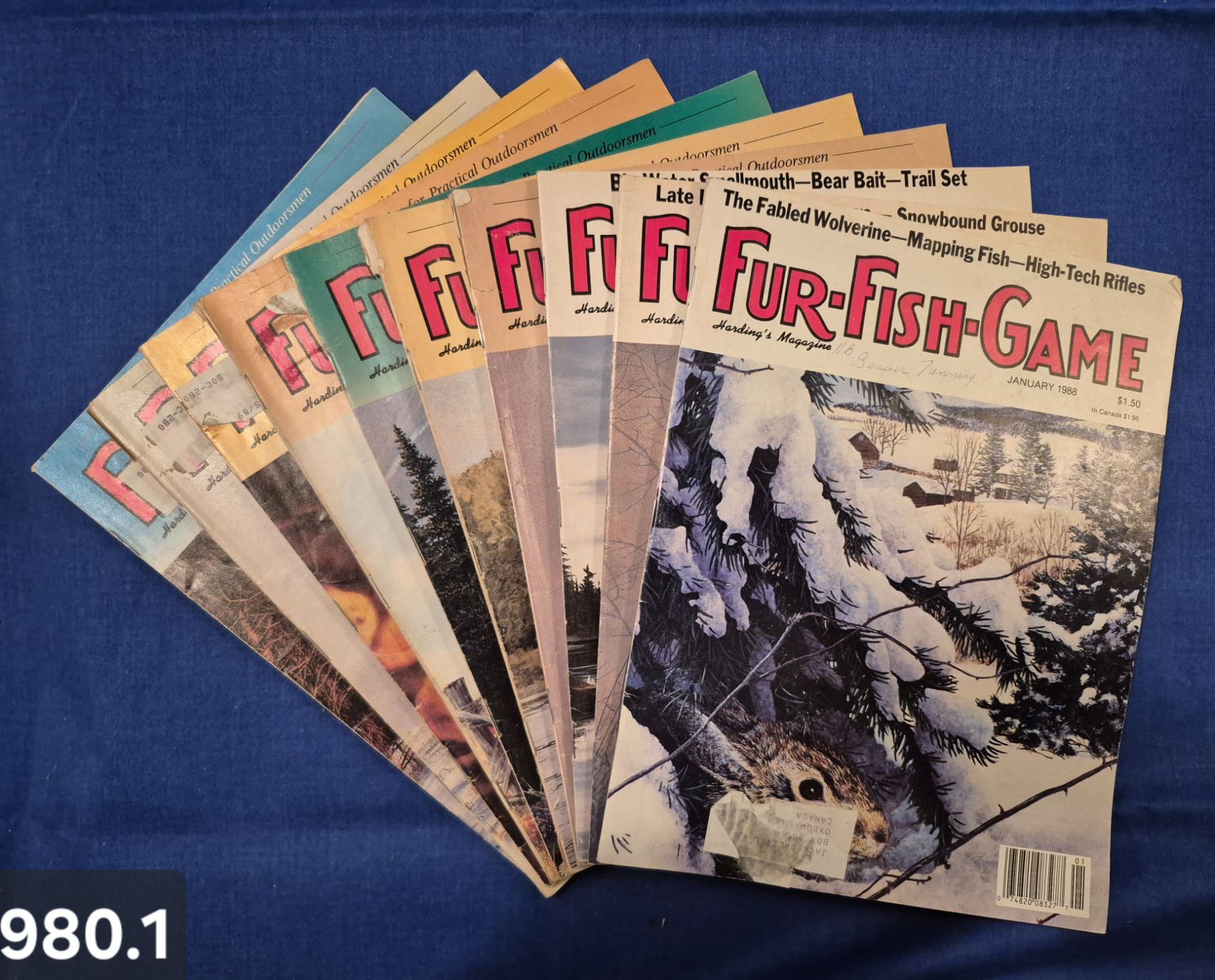 Lot 980 980. 10 Issues of 1988 Fur-Fish-Game outdoor sporting magazines, most in excellent flat condition, l
