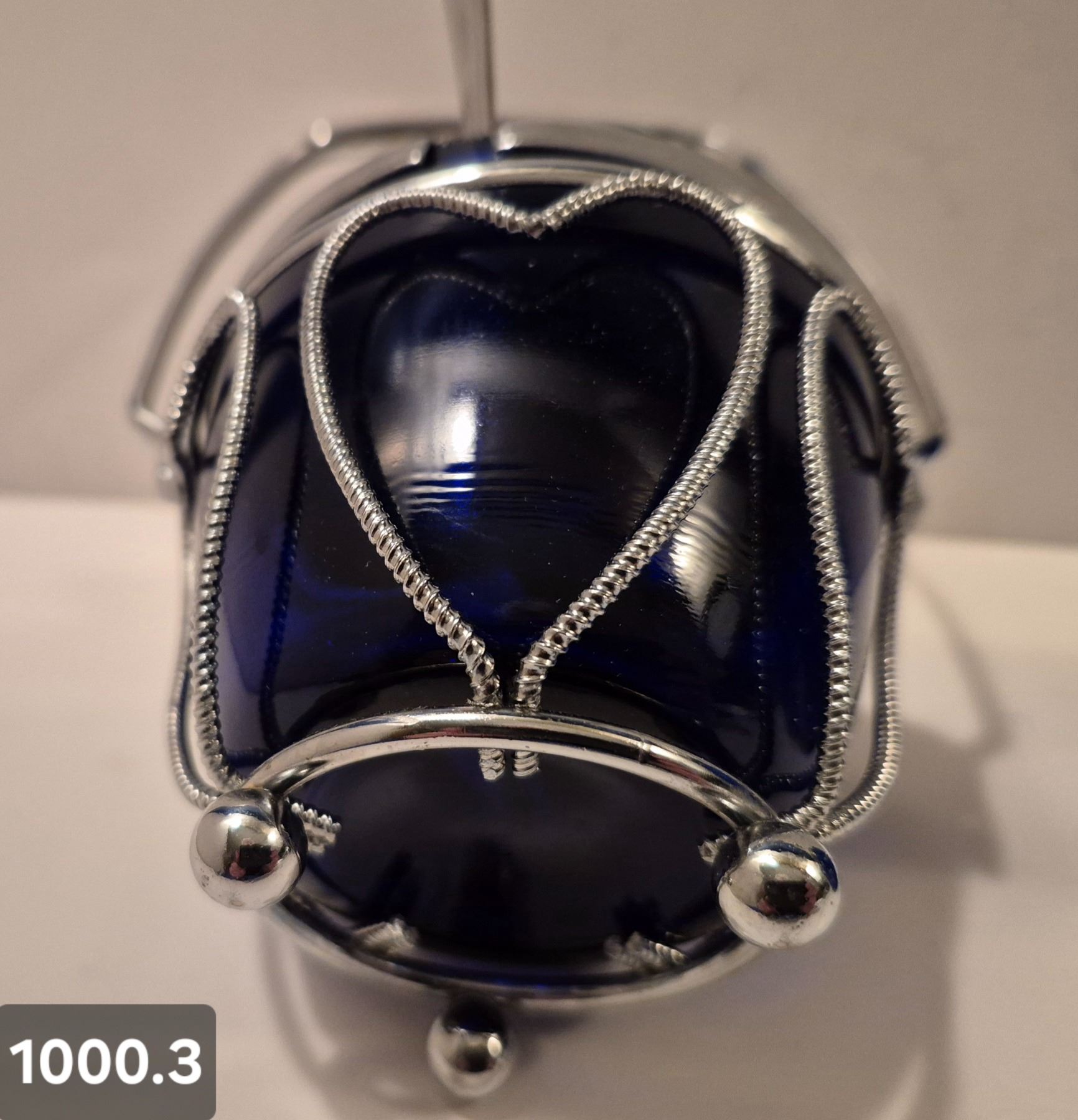 1000. Pair of cobalt blue items, covered jam jar, chrome accents, and salt and pepper shakers