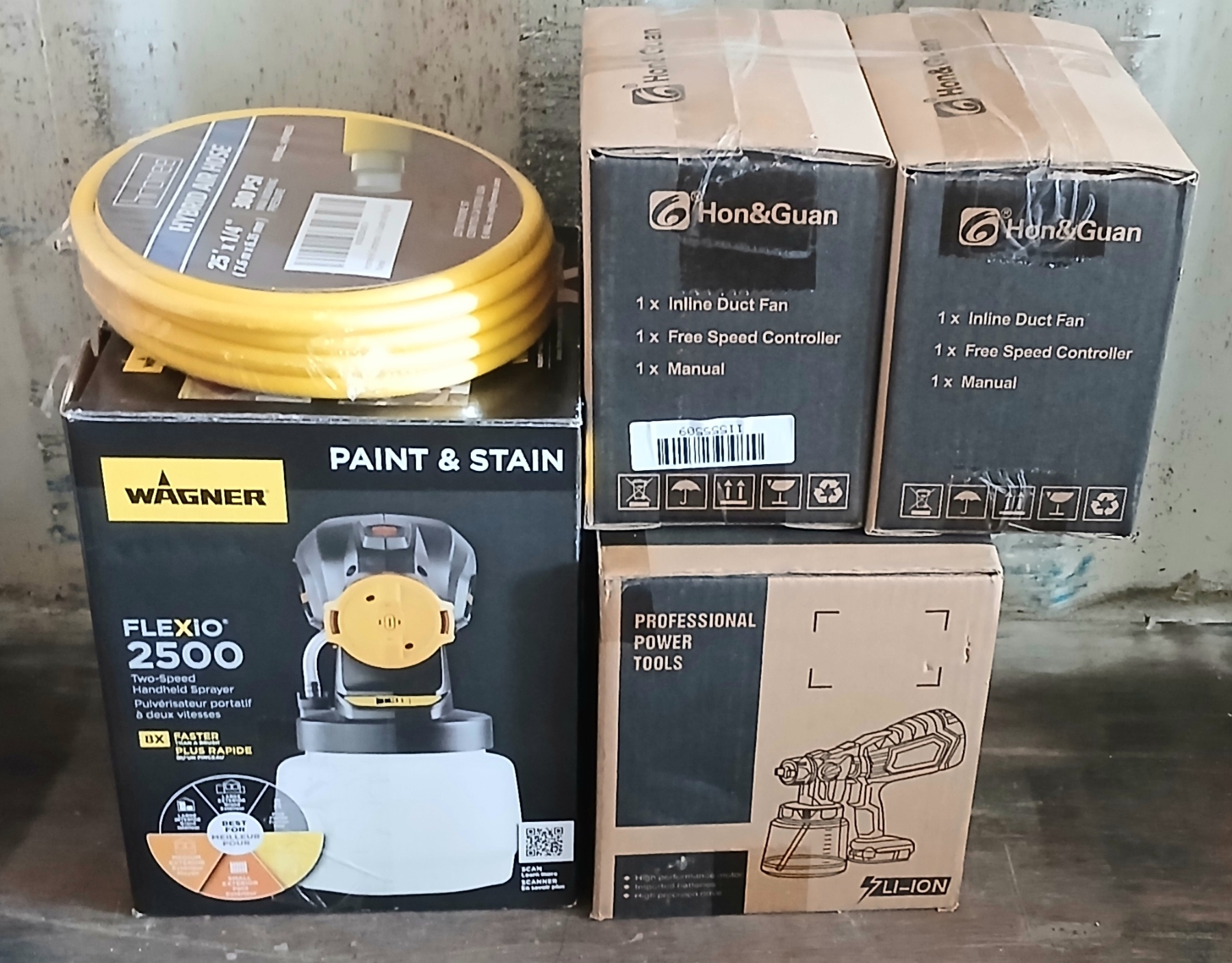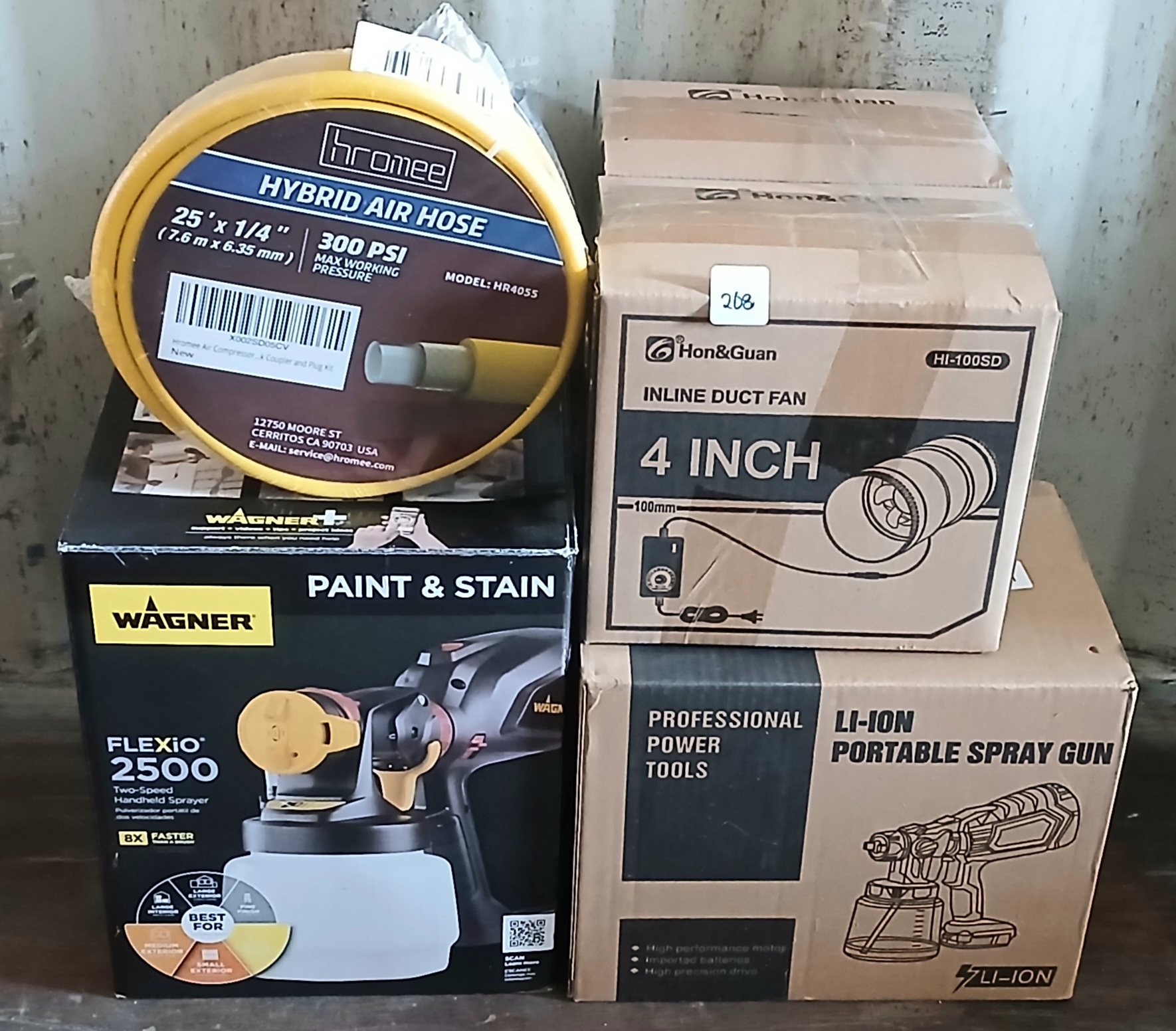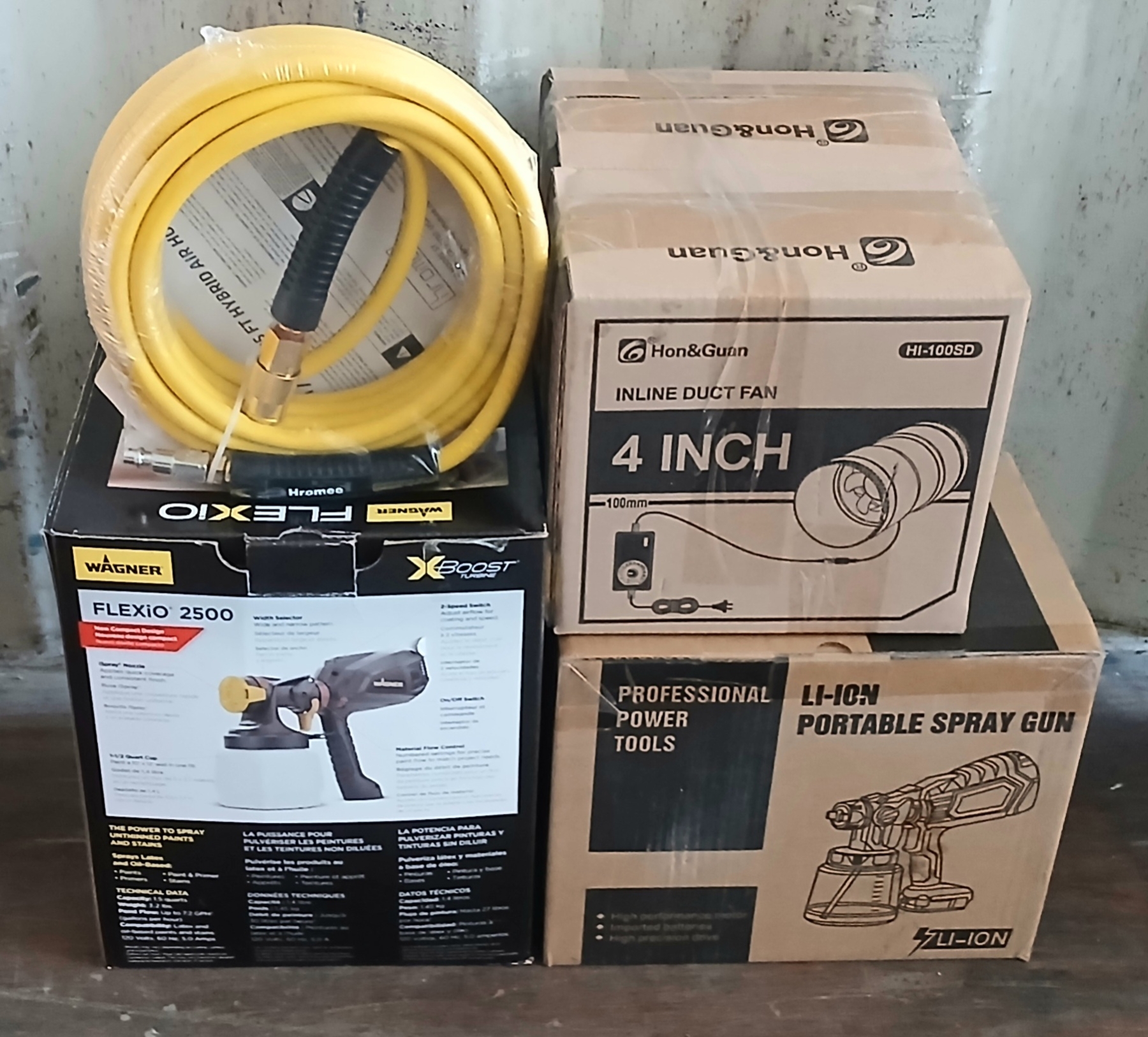Lot 268 LOT OF 4 - WAGNER FLEXIO 2500, 4IN DUCT FAN, 25 X 1/4IN AIR HOSE, ETC - AS NEW