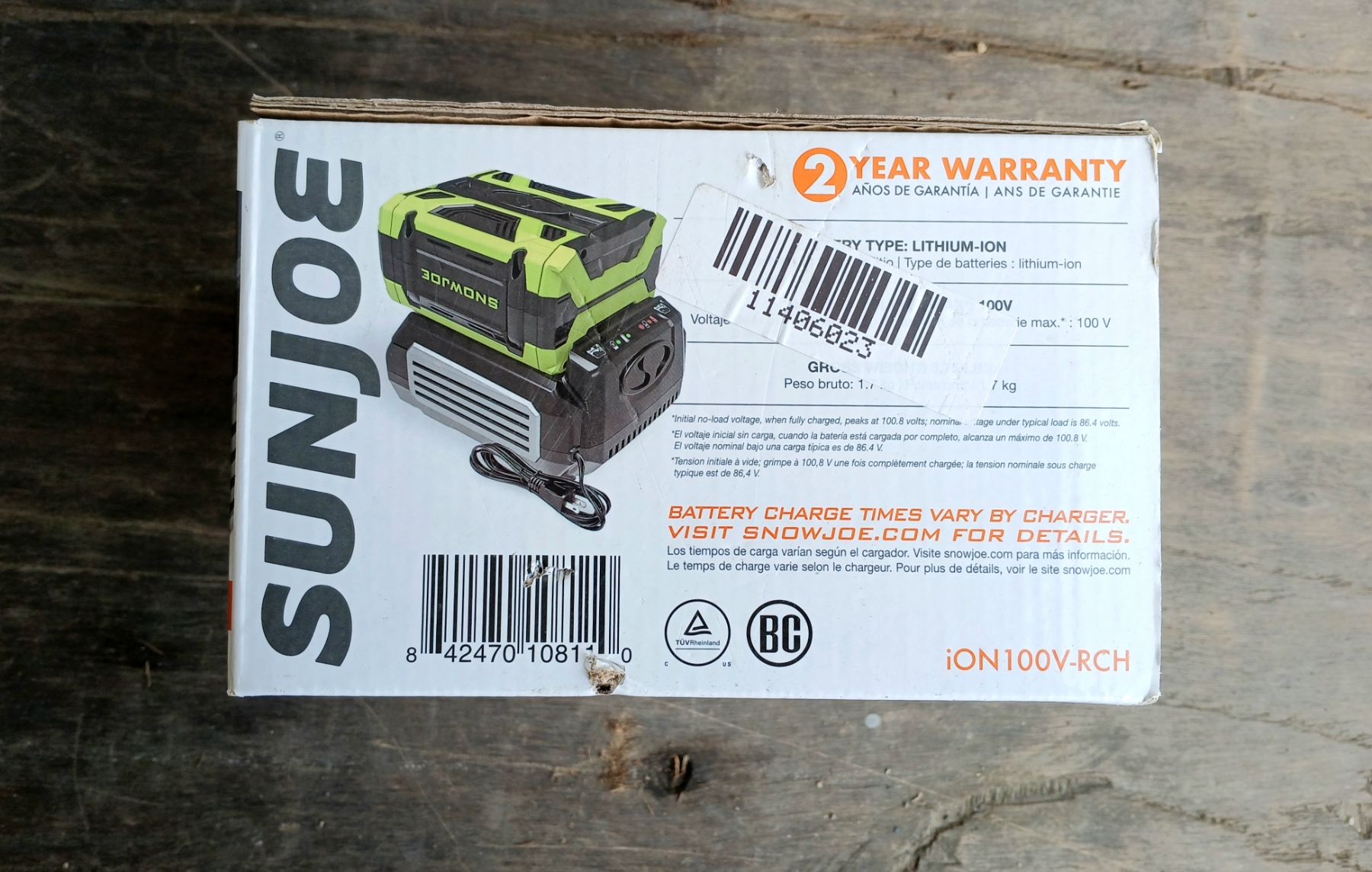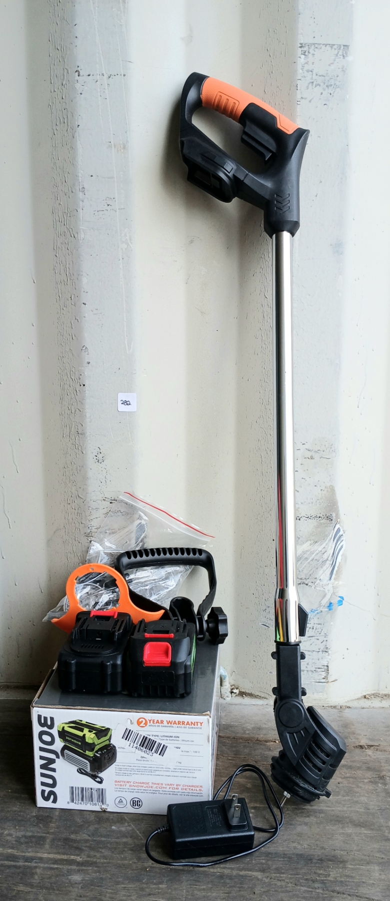 Lot 282 LOT OF 2 - ADVANCE AUTOPARTS WEED WACKER & SUNJOE 100V BATTERY CHARGER