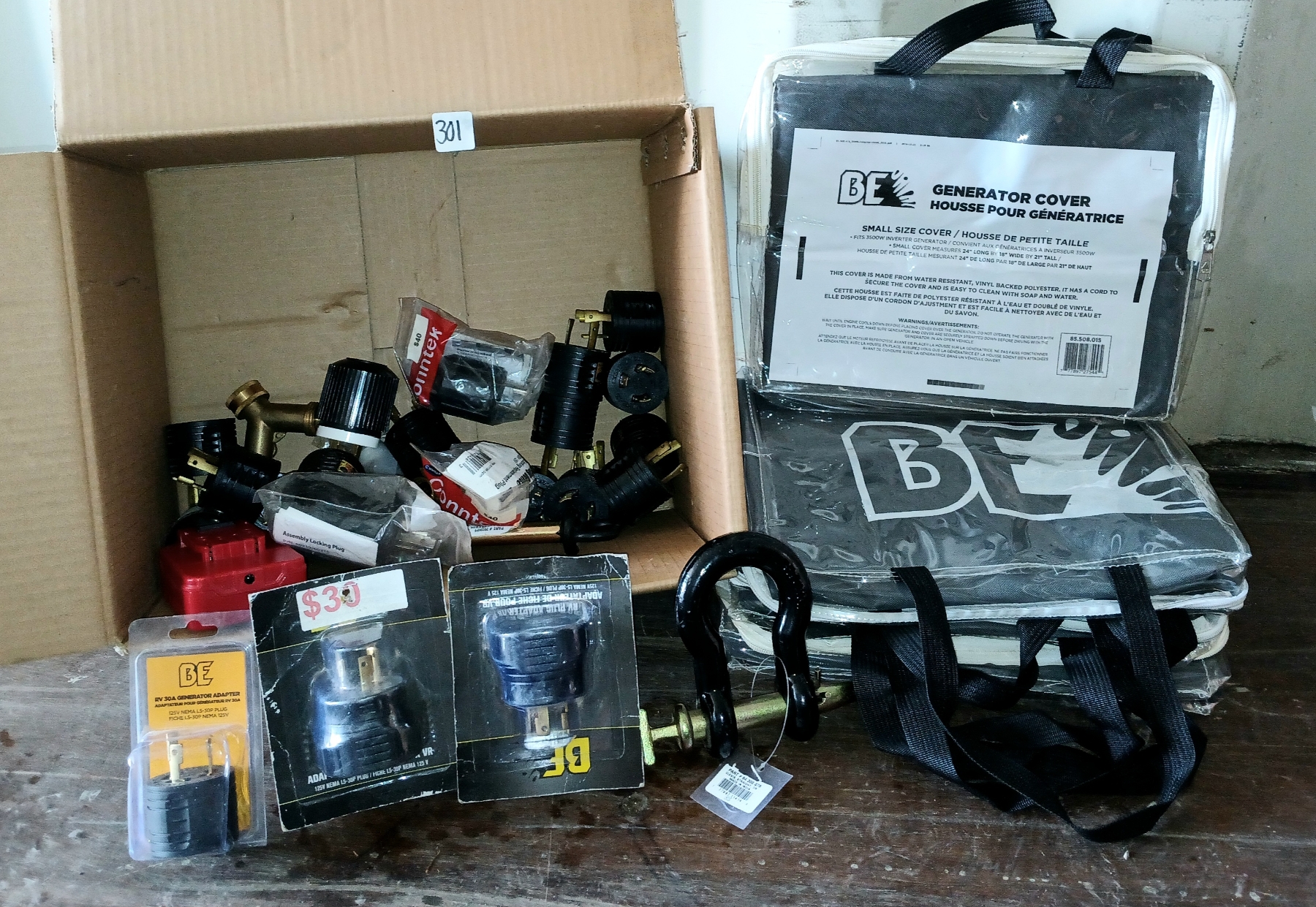 Lot 301 JOB LOT - WIRING TOOLS, HITCH PINS, GENERATOR COVERS, ETC
