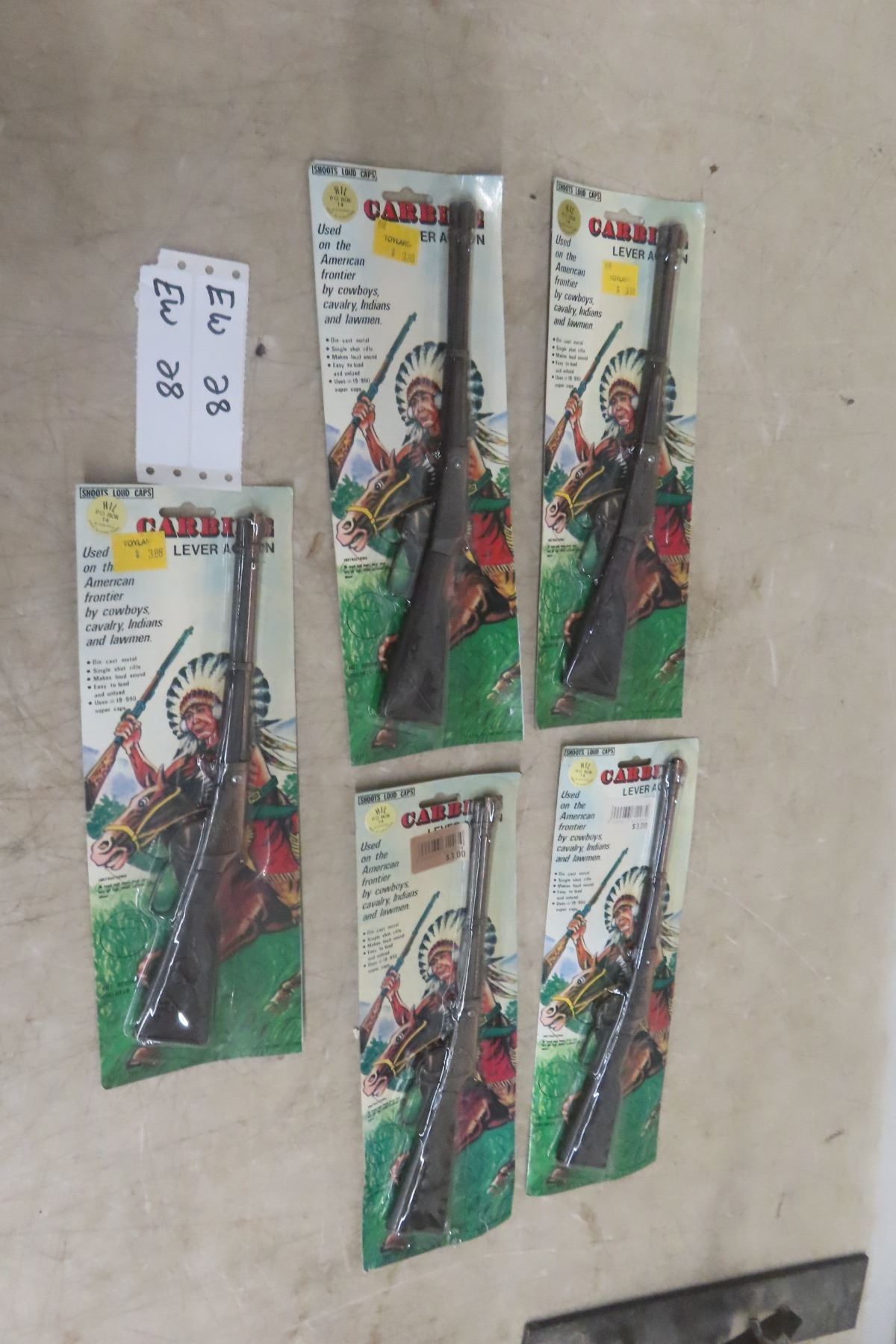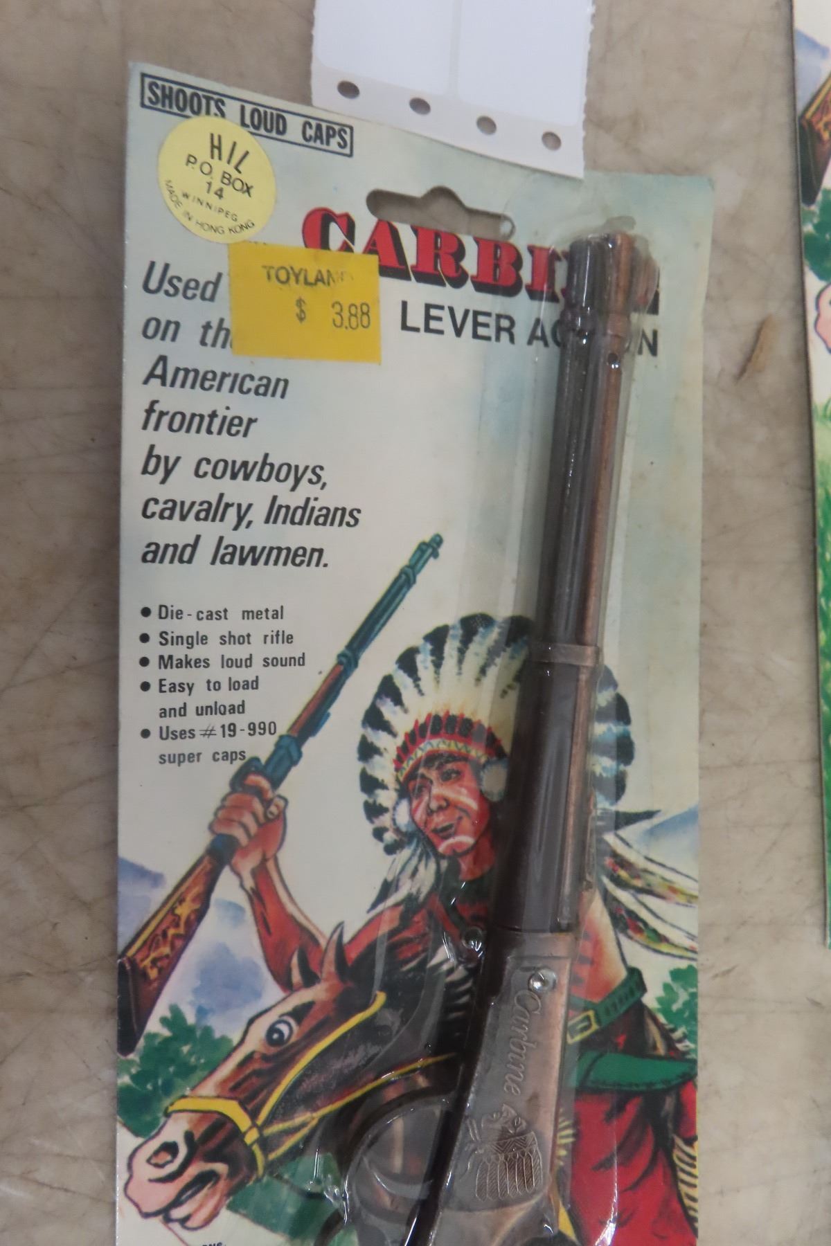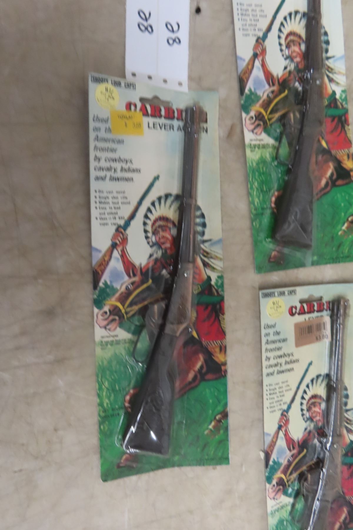Lot 28 NOS Carbine Lever Action Cap Gun, Original Store Packaging, 11" Long