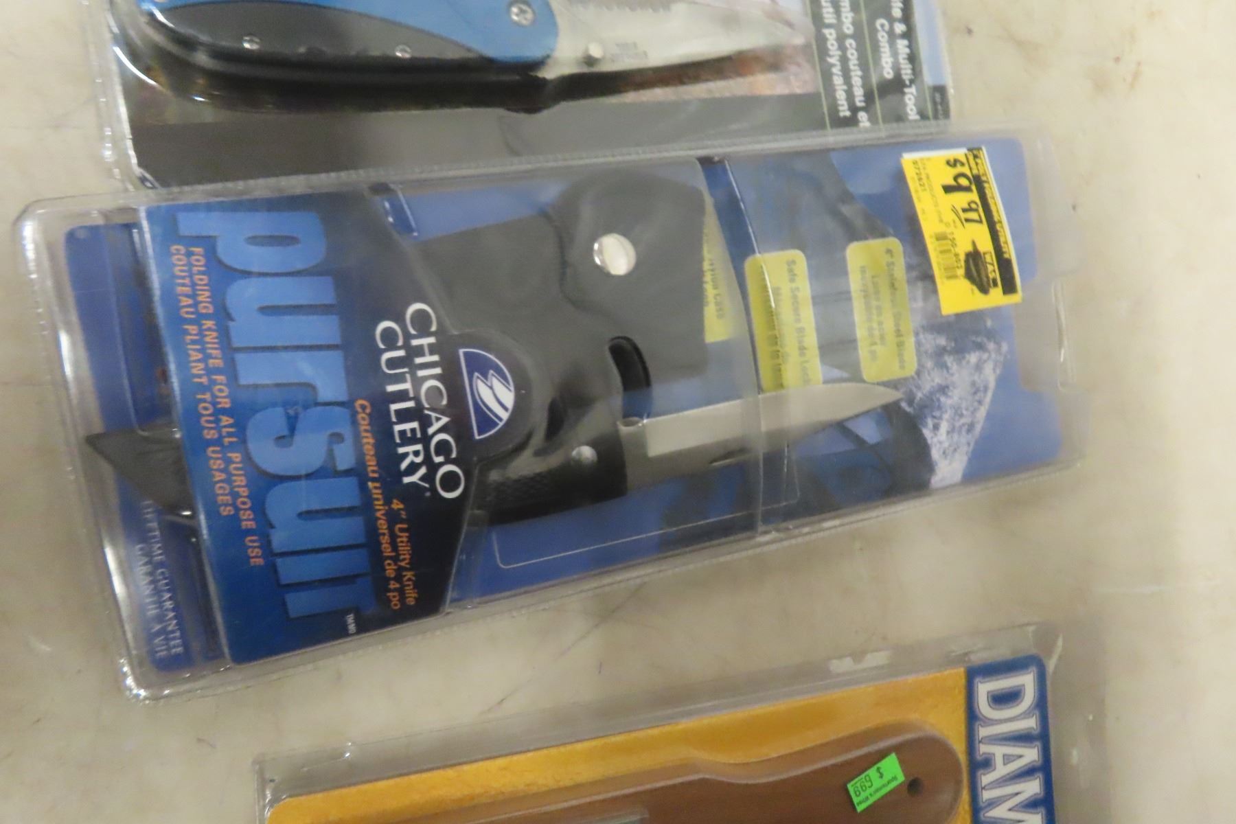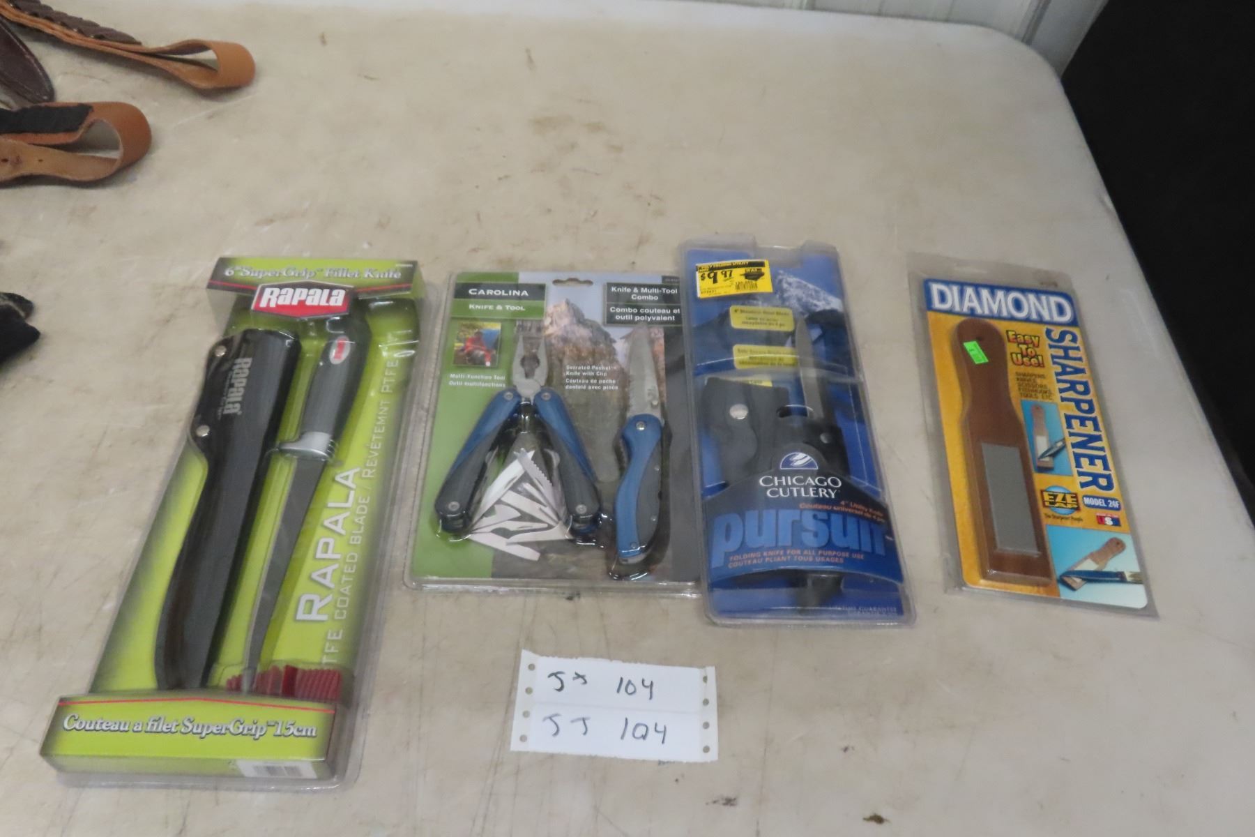 3 New Knives and Sharpener: Rapala Fillet, Pursuit Utility, and Utility **If you are bidding on a gun, you are required to have a valid PAL. If you are purchasing ammo, we DO NOT SHIP.**