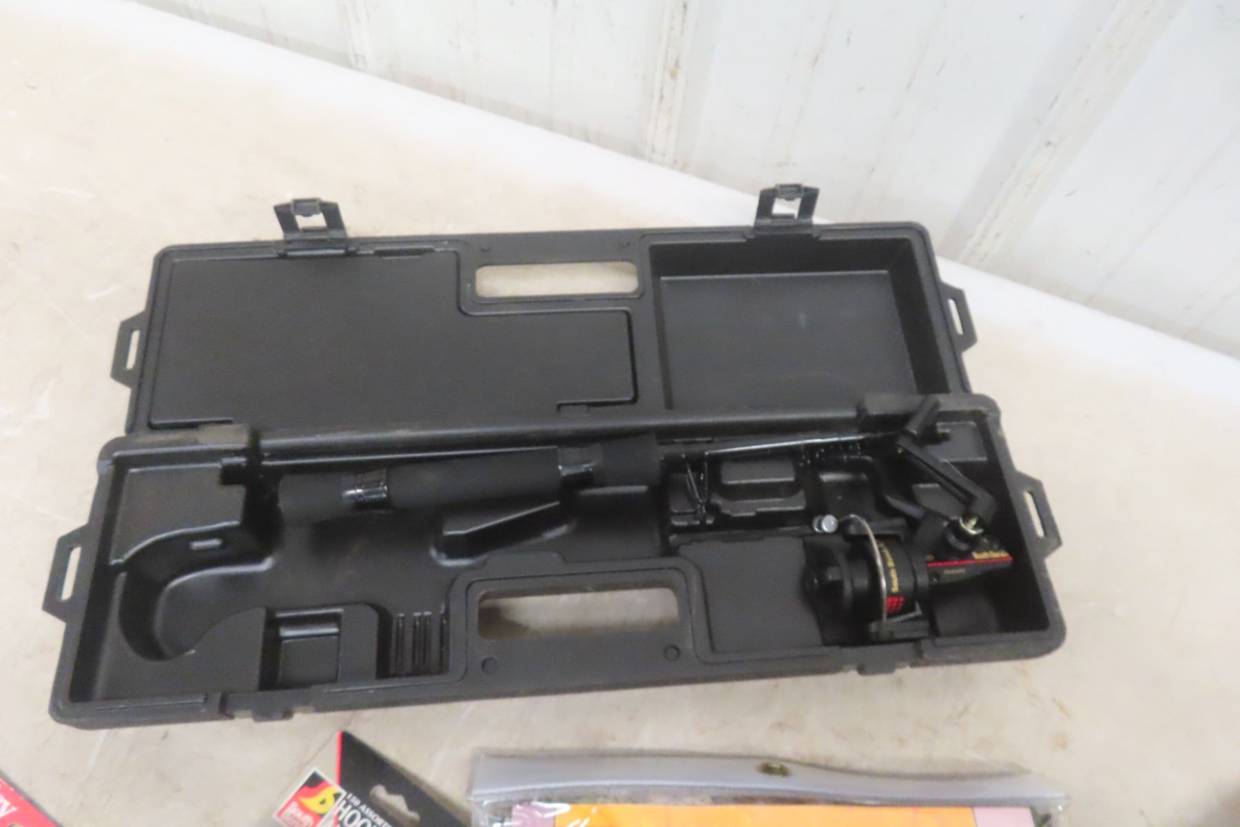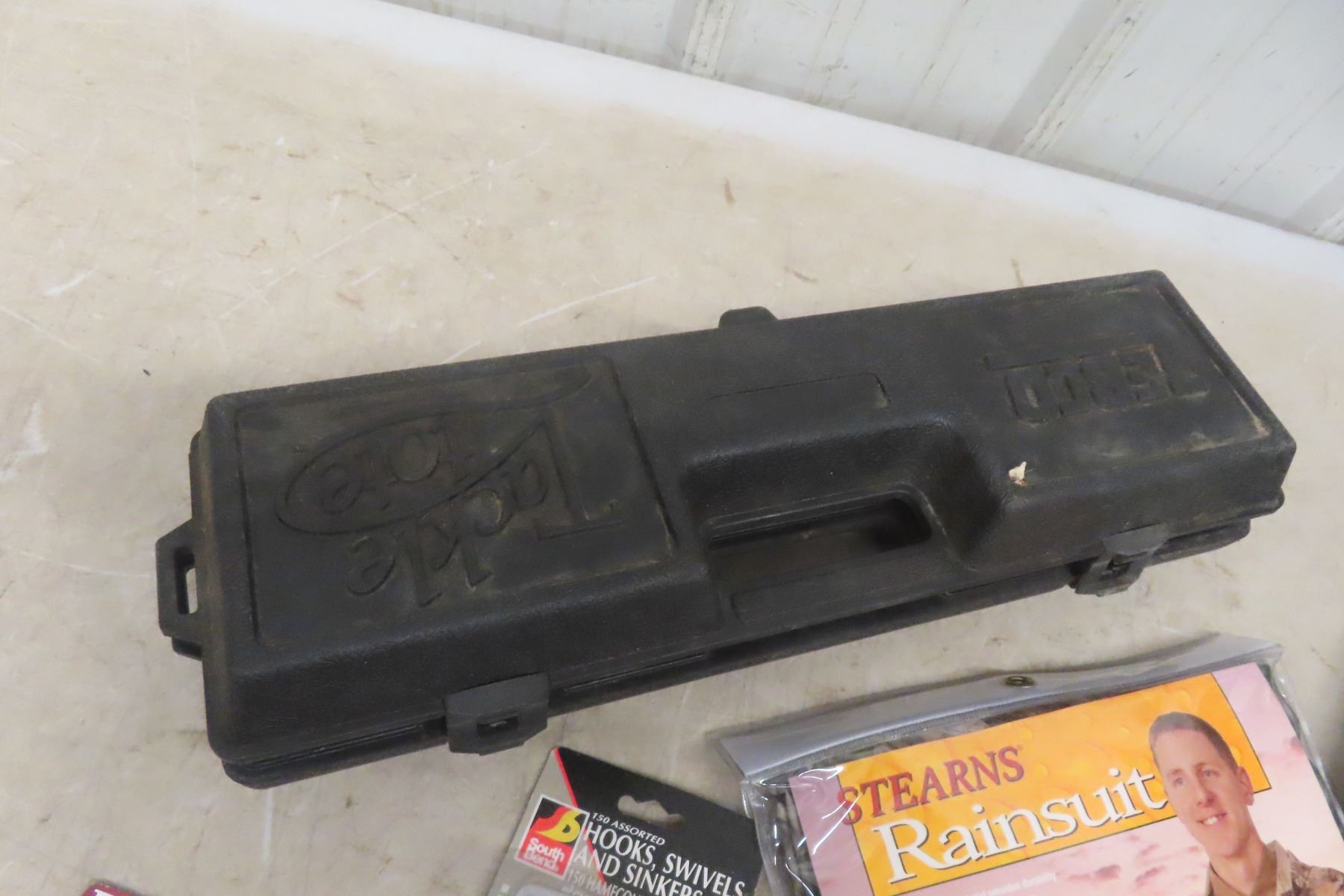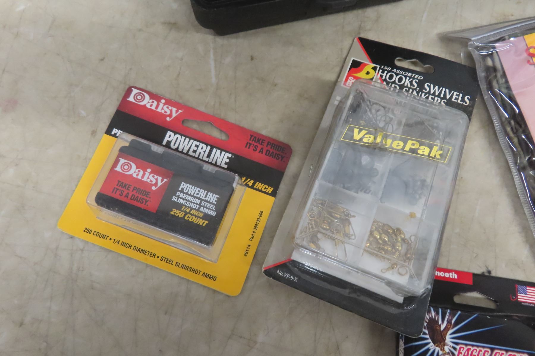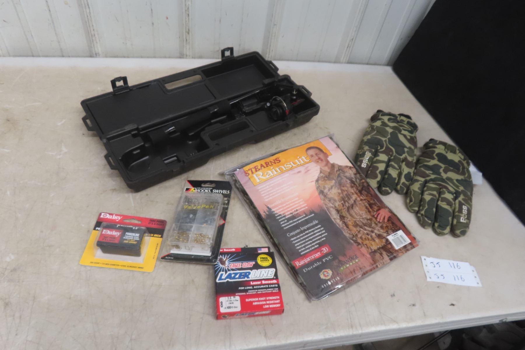 Lot 116 Southland SIO Fishing Rod and Reel, Rain Gear, Fishing Line and Hooks, Slingshot Ammo