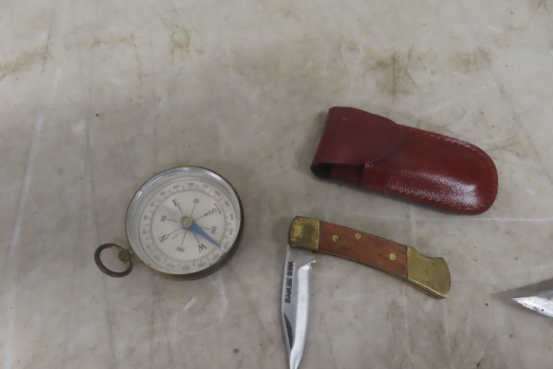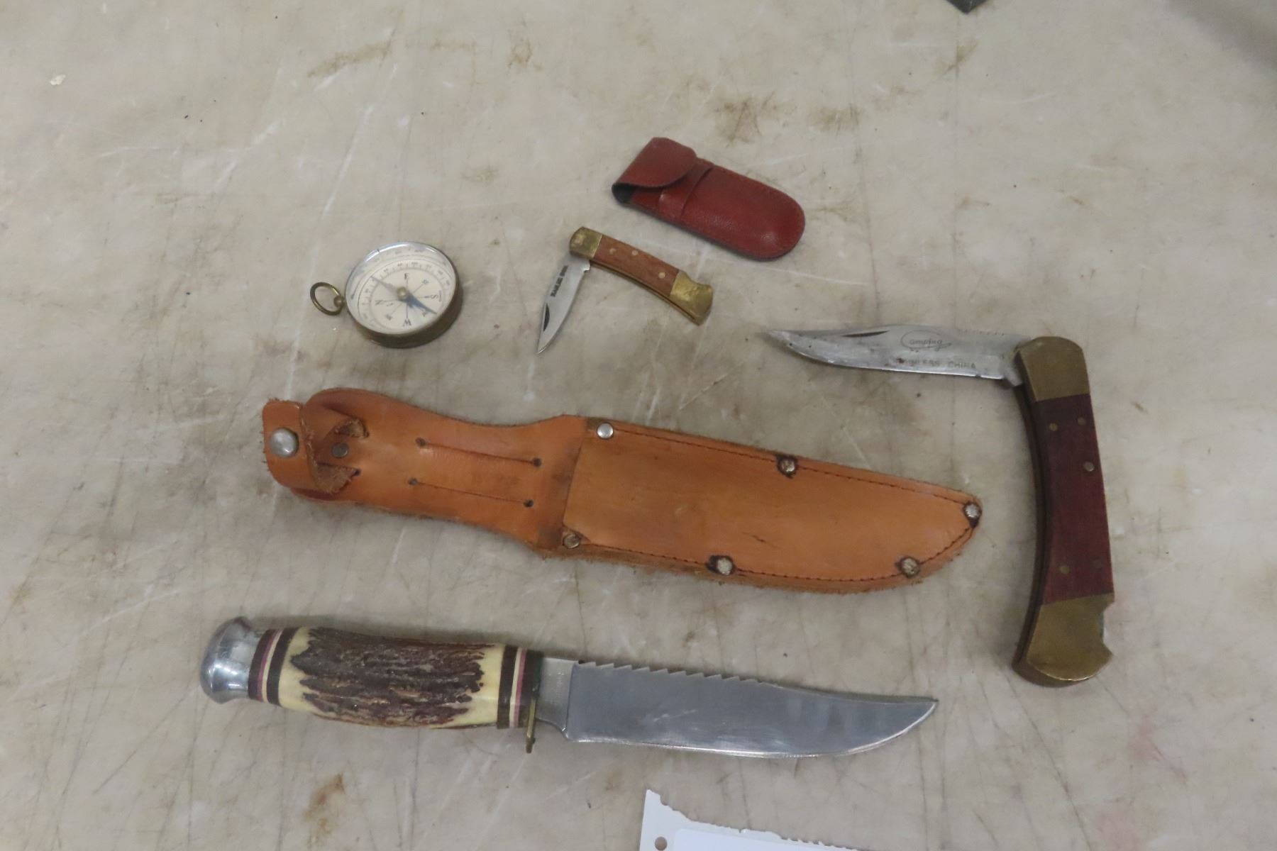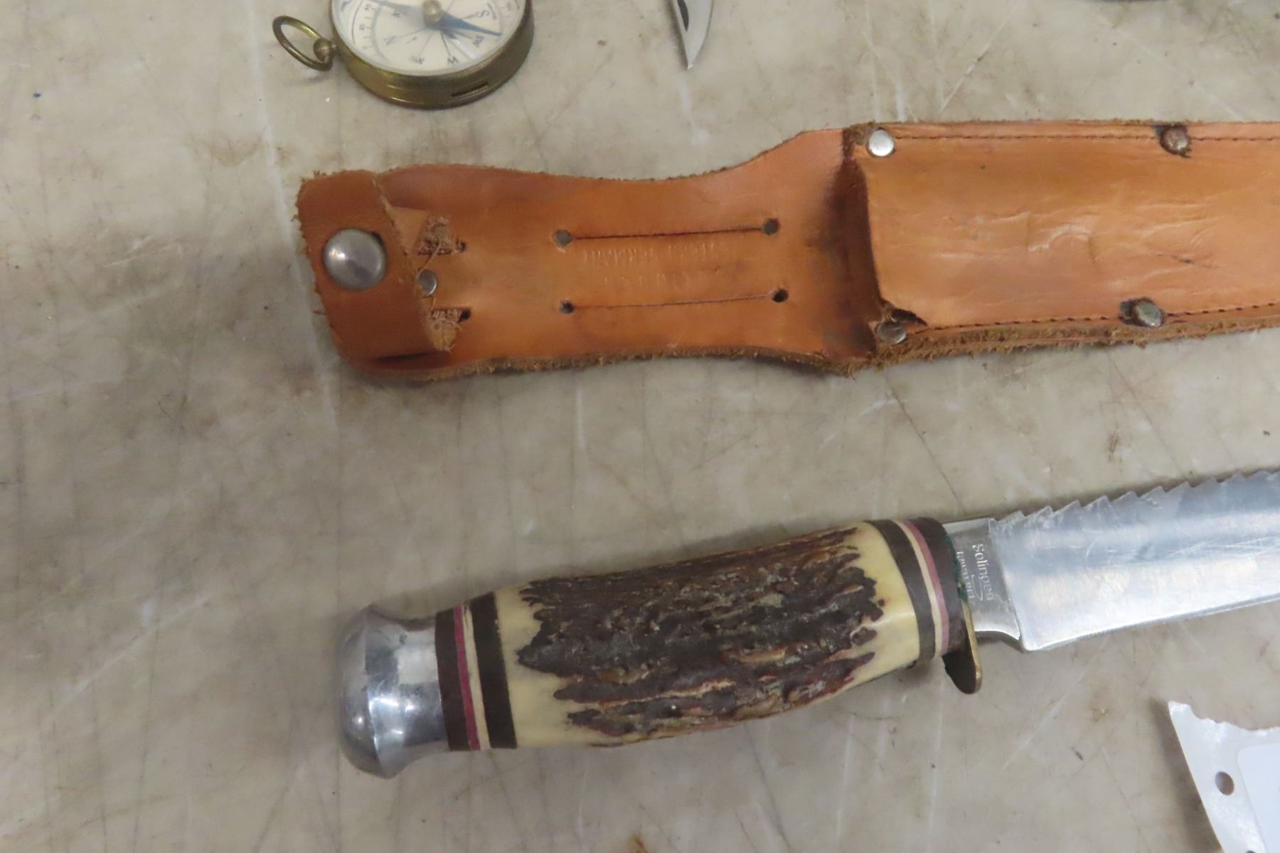 Lot 14 Hunting Knife, Pocket Knife, and Compass